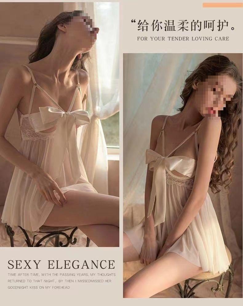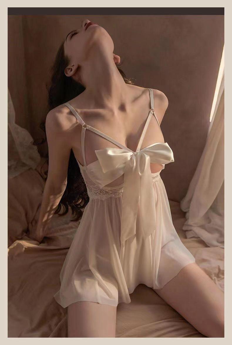[breasT supporT] whiTe bow nighTgown + T panTs, [breasT supporT] whiTe bow nighTgown + T panTs + fishneT sTock...