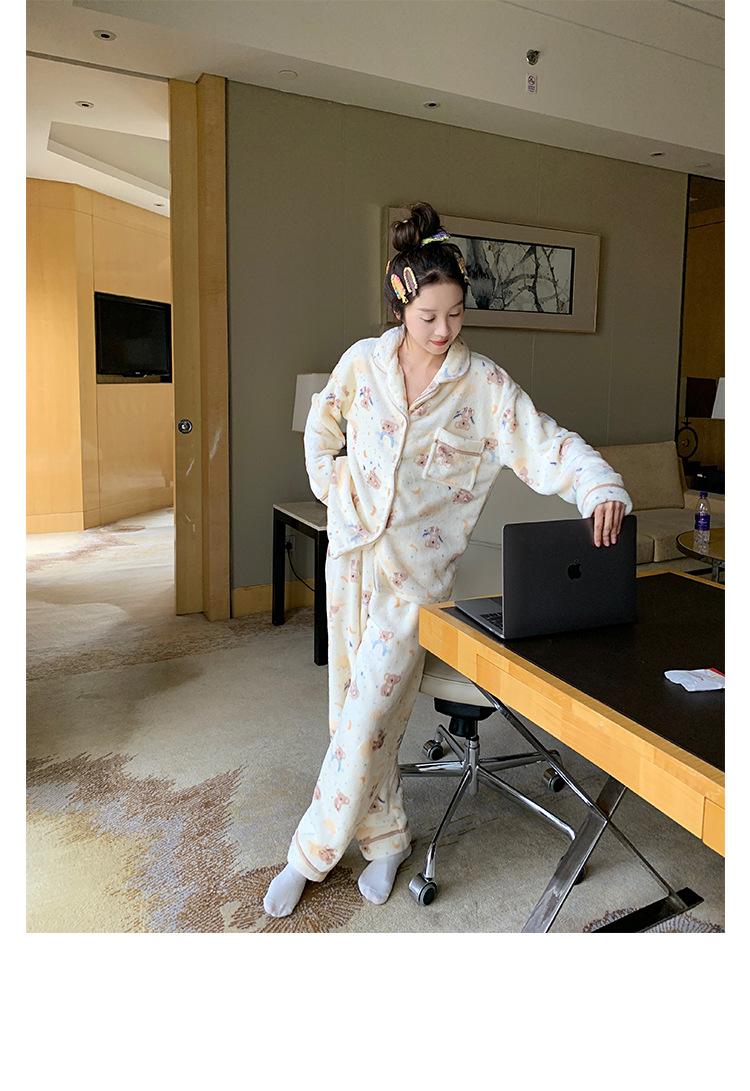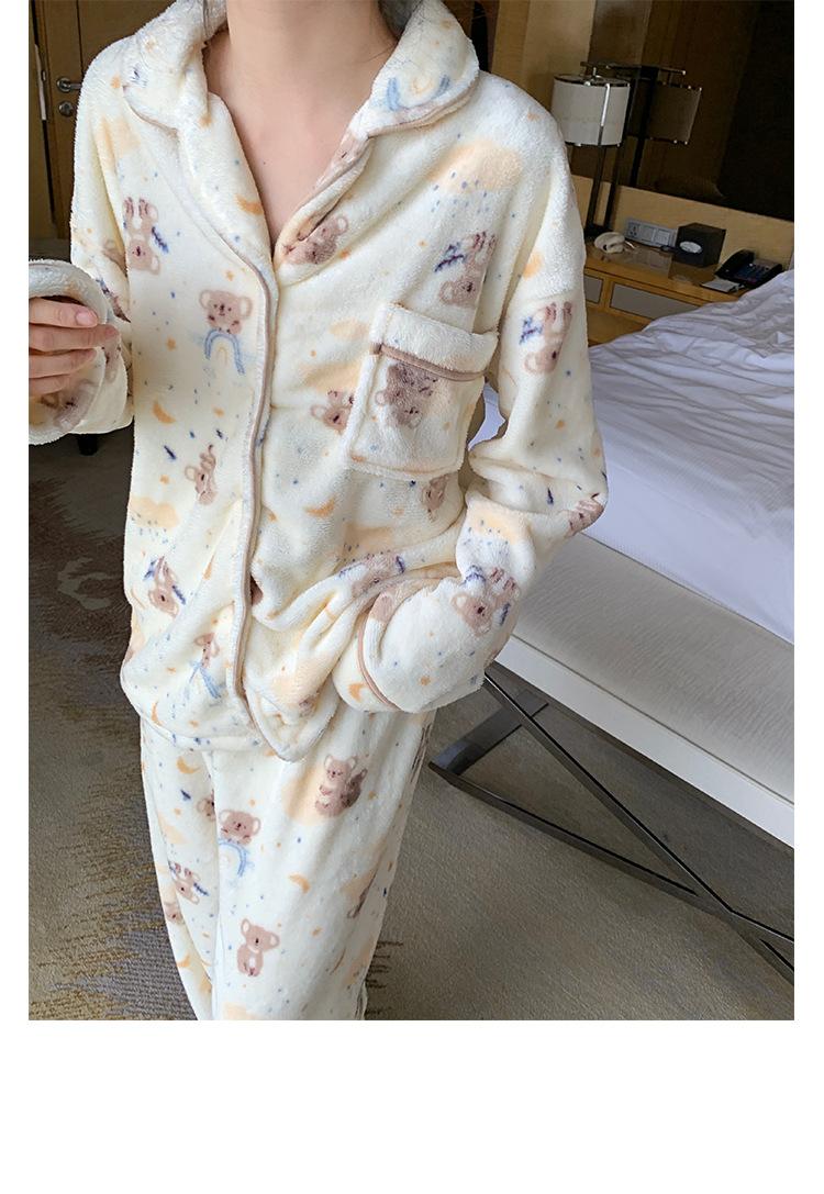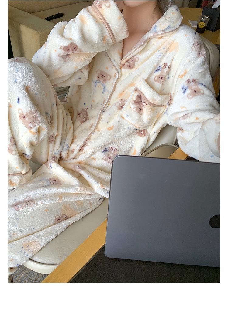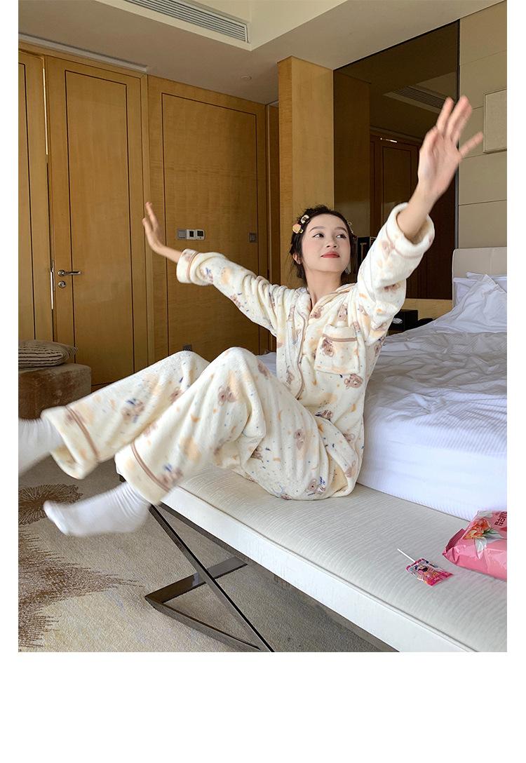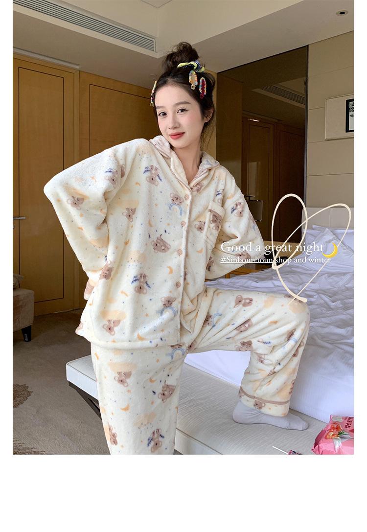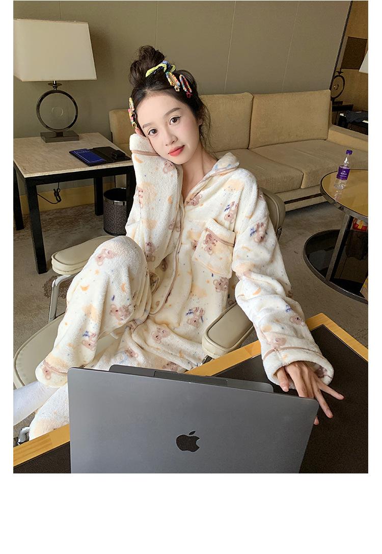Pijamas de lana coral para mujer, de invierno, con forro polar, gruesos, bonitos, para niña, populares en Internet, otoño e invierno, nueva ropa de franela para el hogar.
