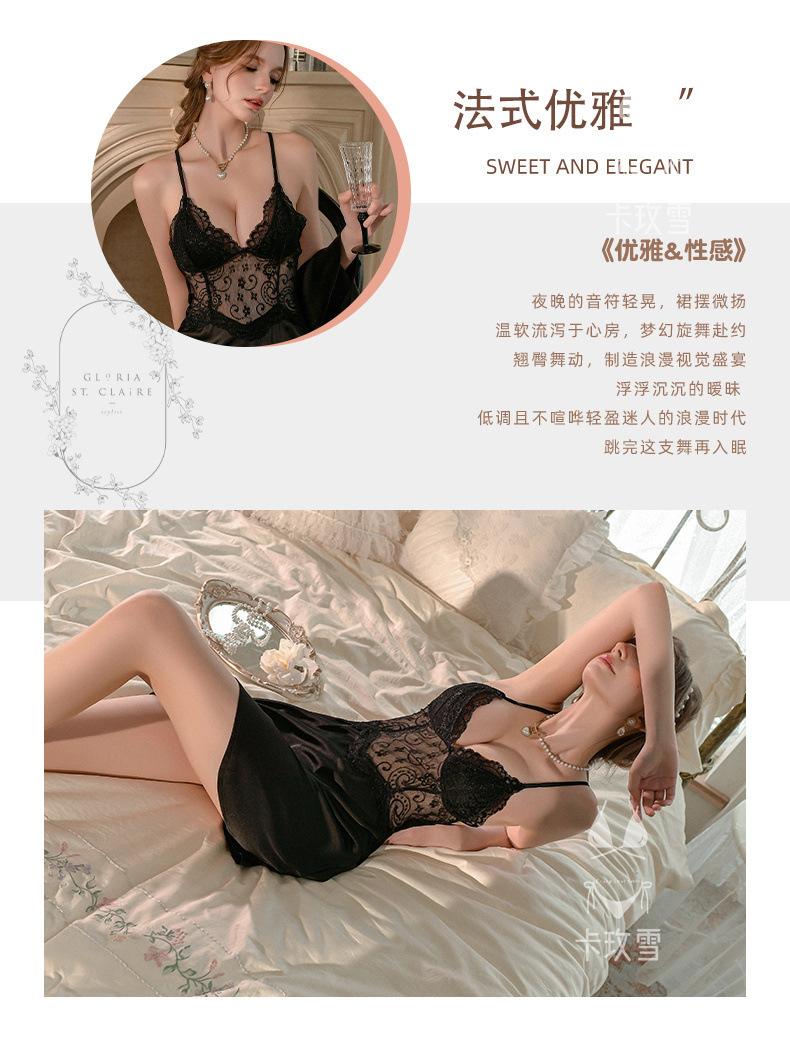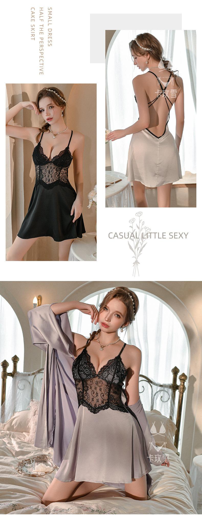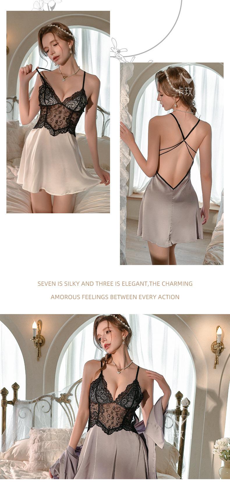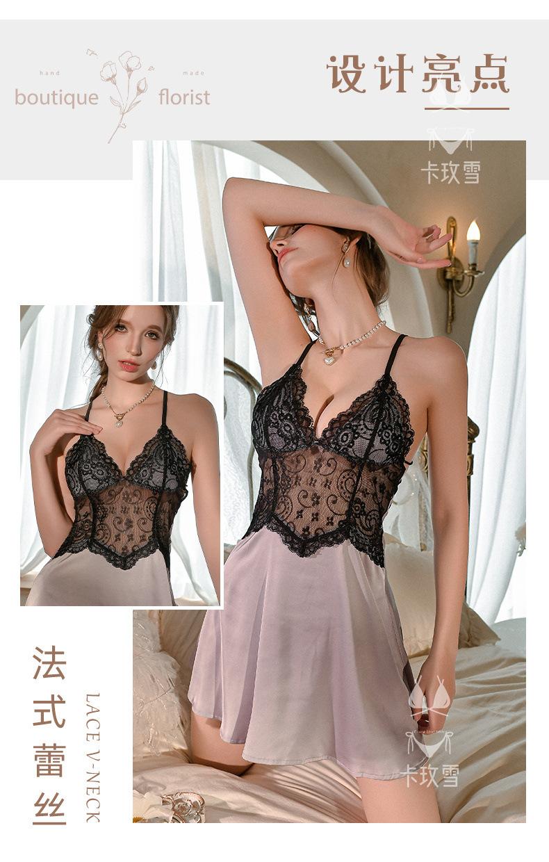 Camisola Sexy Camisón Encaje Vestido Slip Transparente Seductor Ropa de Dormir Ropa para el Hogar para Mujer Vestido de Noche sin Espalda 2172