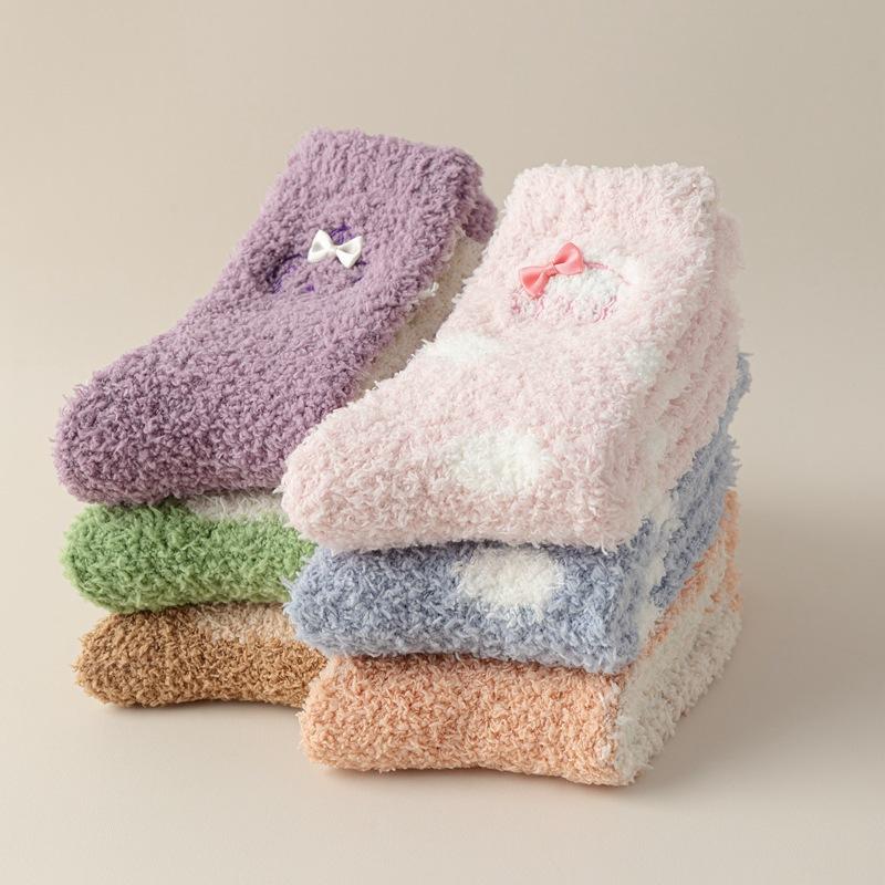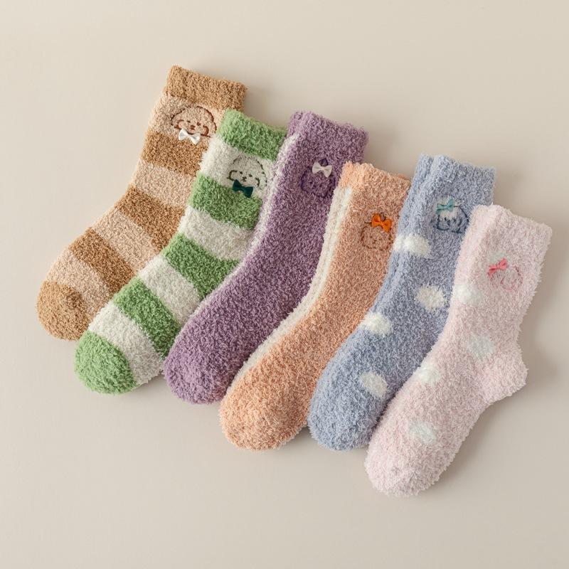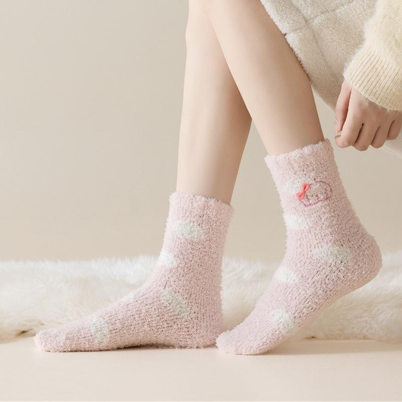 Calcetines de lana coral con bonitos dibujos animados para mujer, calcetines de tubo medio con forro polar grueso para otoño e invierno, calcetines cálidos para dormir en casa para mujer