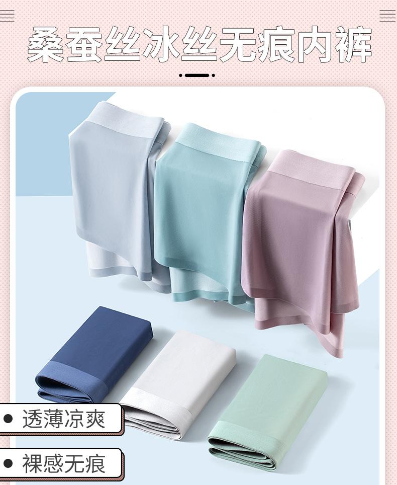 Ropa interior Yuyue de seda de hielo sin costuras nude de talle medio para hombre, verano, delgada, a cuadros, seda de morera, entrepierna antibacteriana, bóxer para hombre