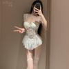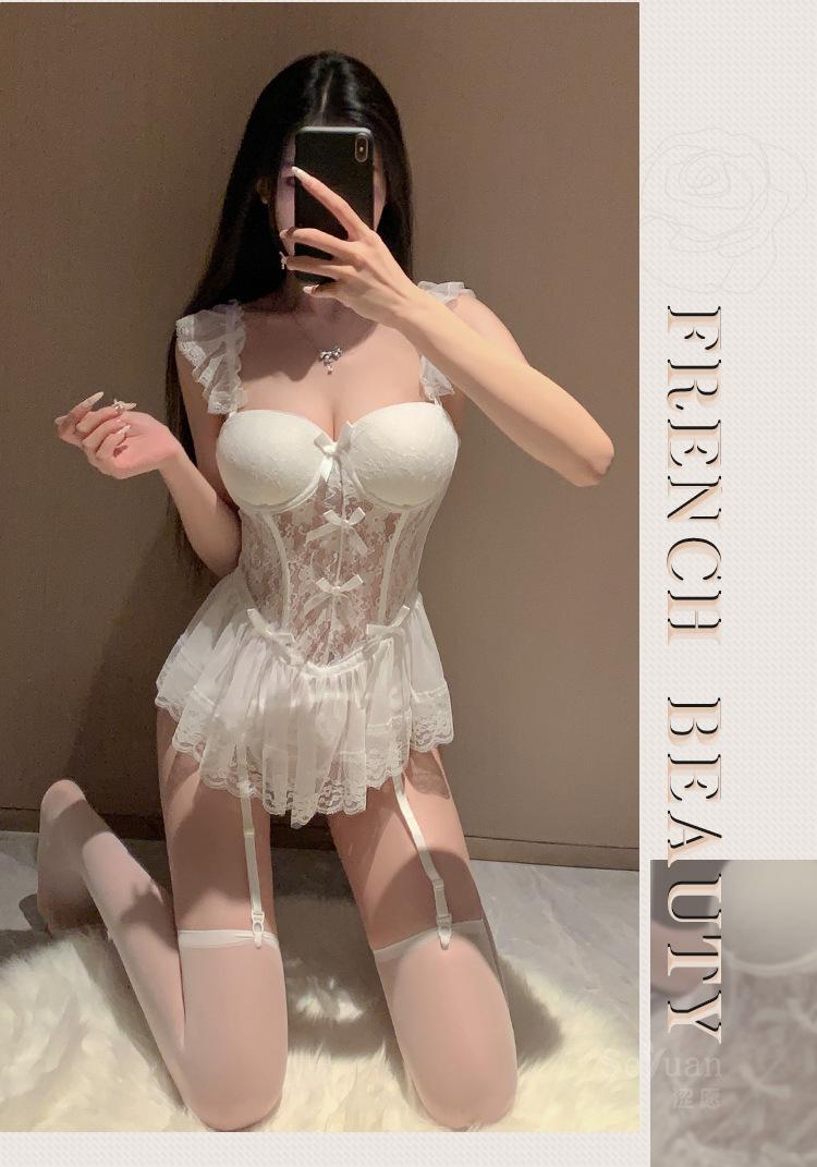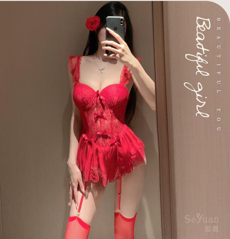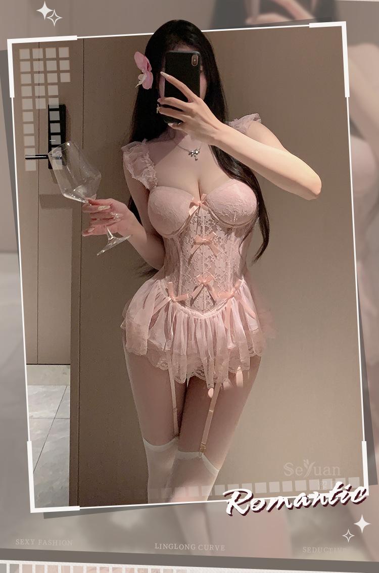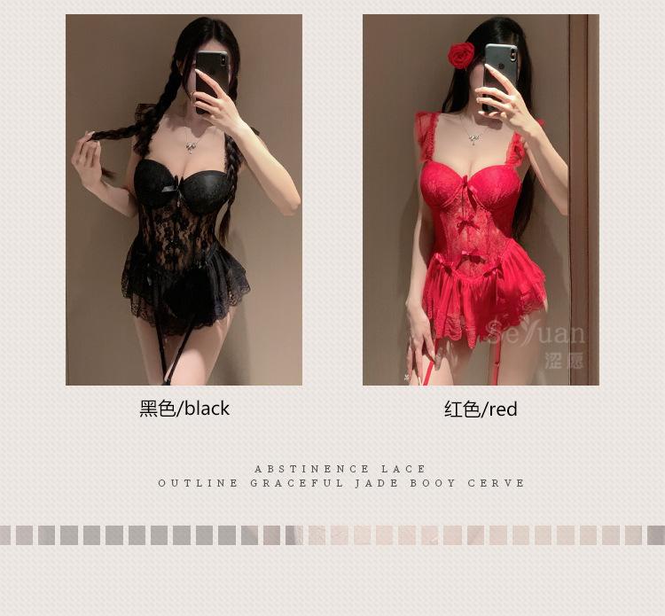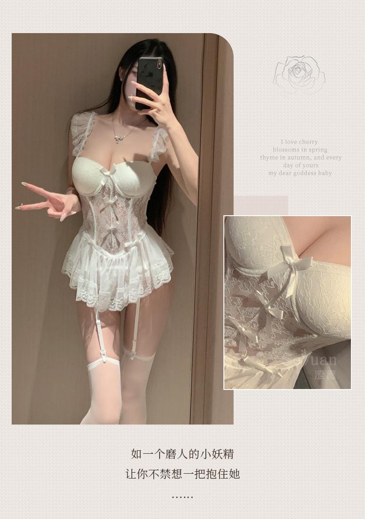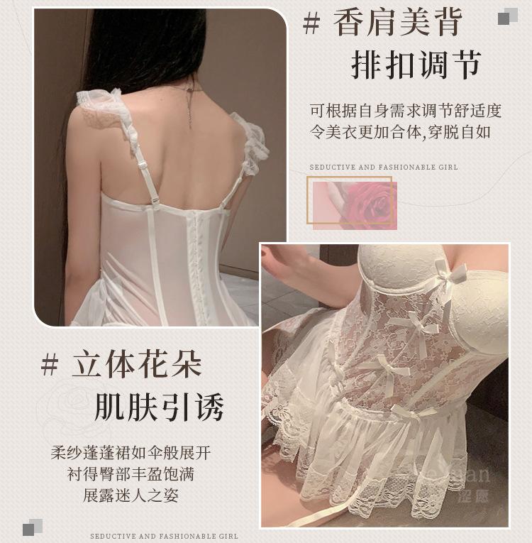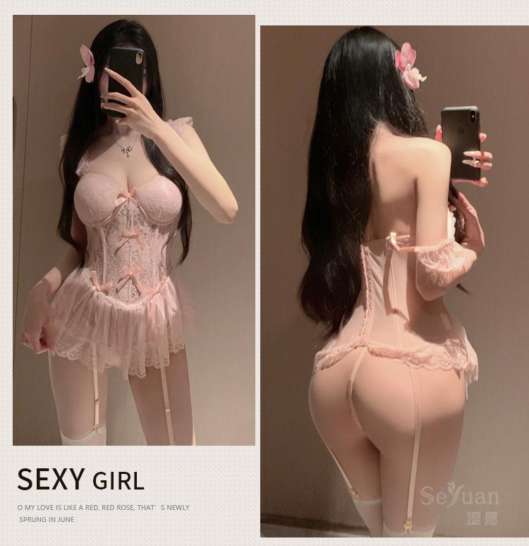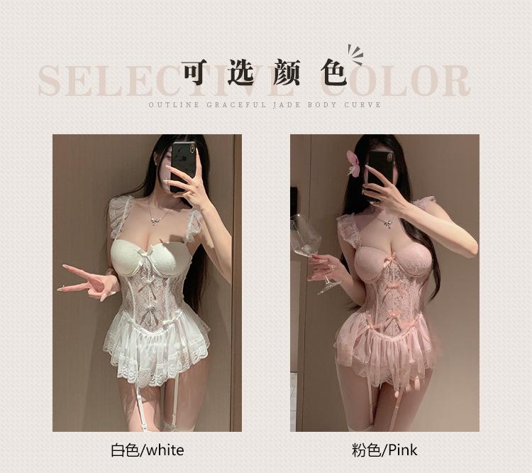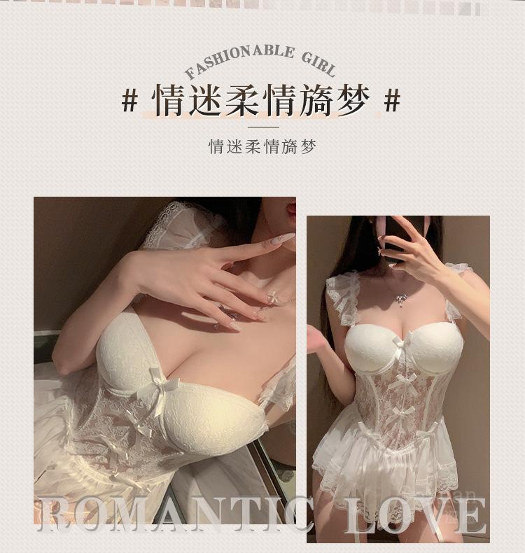 Corsé Sexy Wish Pure Desire de Malla con Varillas de Ballena Ropa Exterior Traje de Ropa Interior Sexy de Encaje Sexy Pecho Pequeño Recogido con Varillas de Acero Camisón