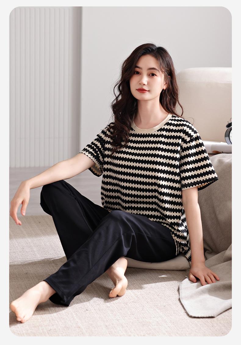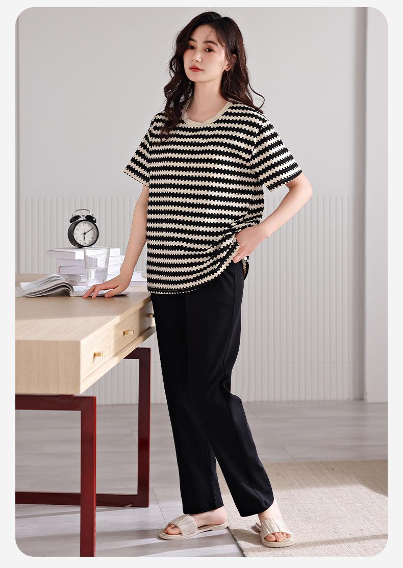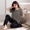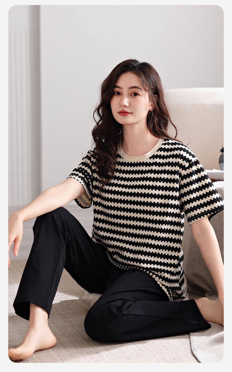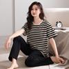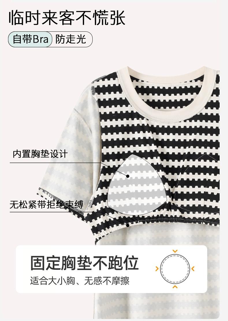 Pijama de algodón puro con almohadilla para el pecho para mujer, de verano, informal, sencillo, de manga corta, a rayas, para el hogar, ropa exterior fina.