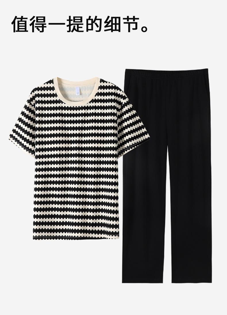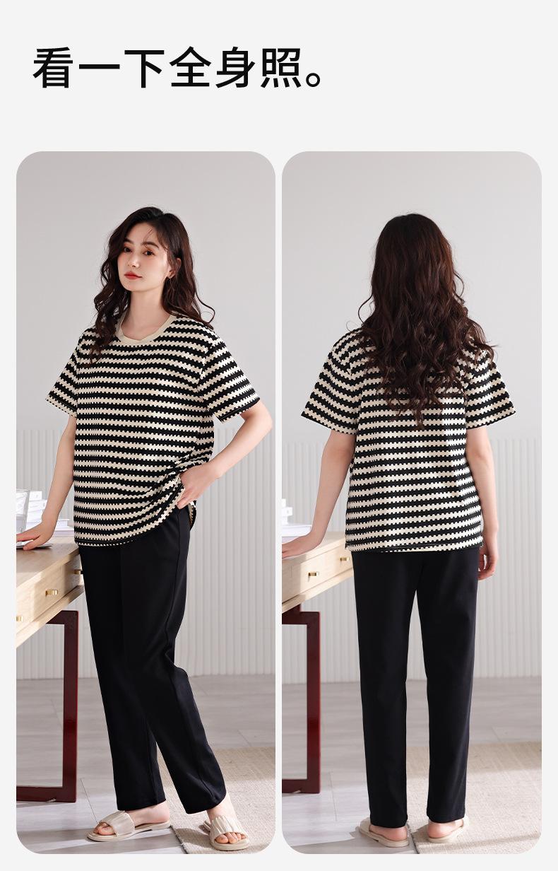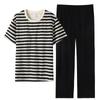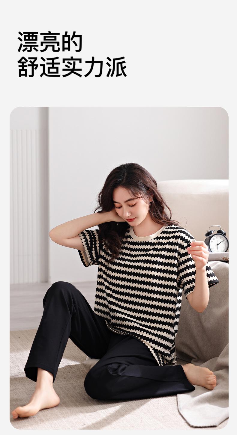 Pijama de algodón puro con almohadilla para el pecho para mujer, de verano, informal, sencillo, de manga corta, a rayas, para el hogar, ropa exterior fina.