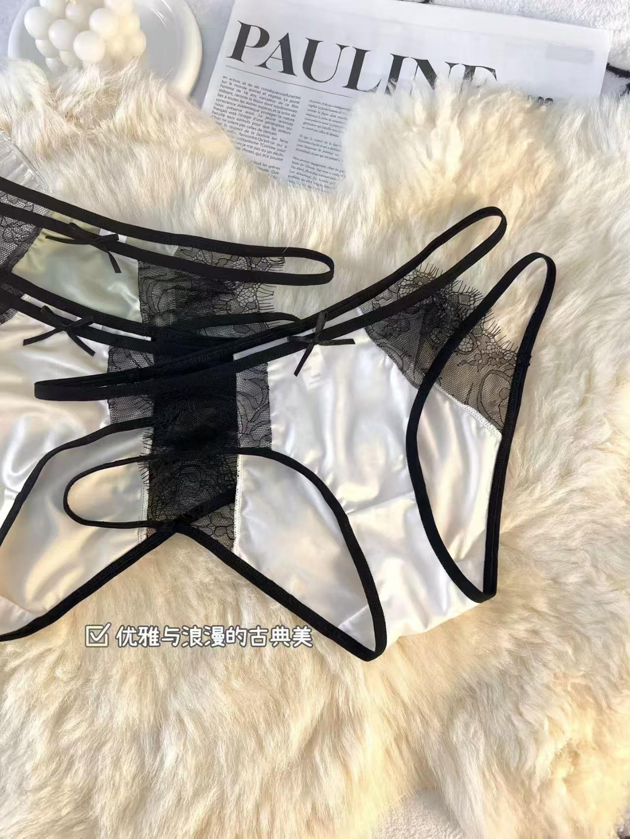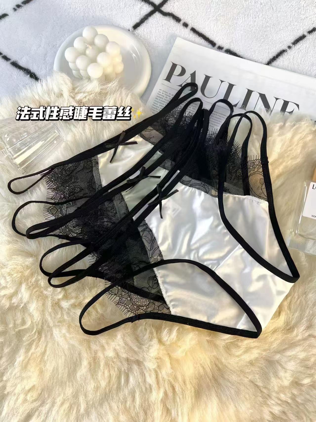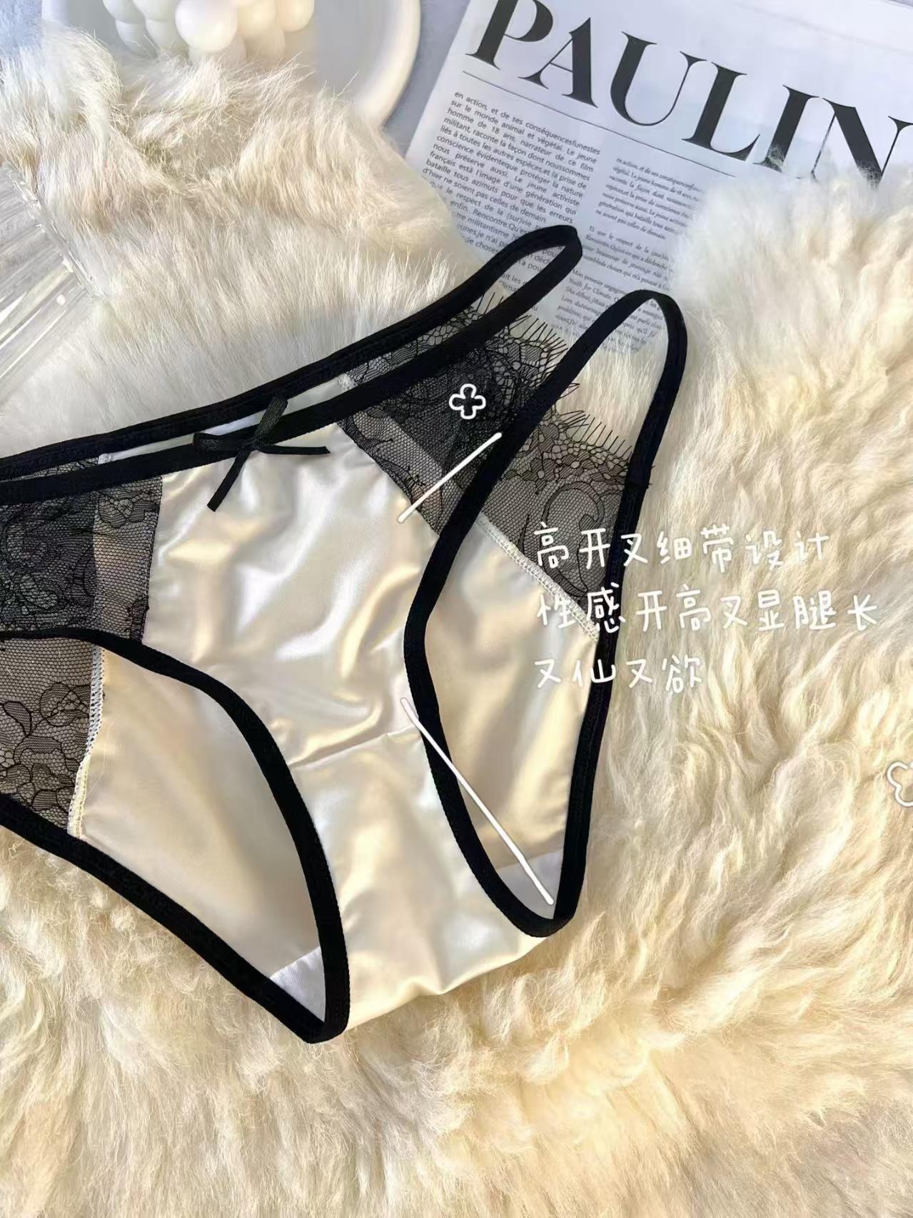 Ropa interior de encaje francés sexy para mujer, estilo puro deseo, de algodón puro, transpirable, fina, con aberturas, cinturón fino, cintura baja, bragas para niña.