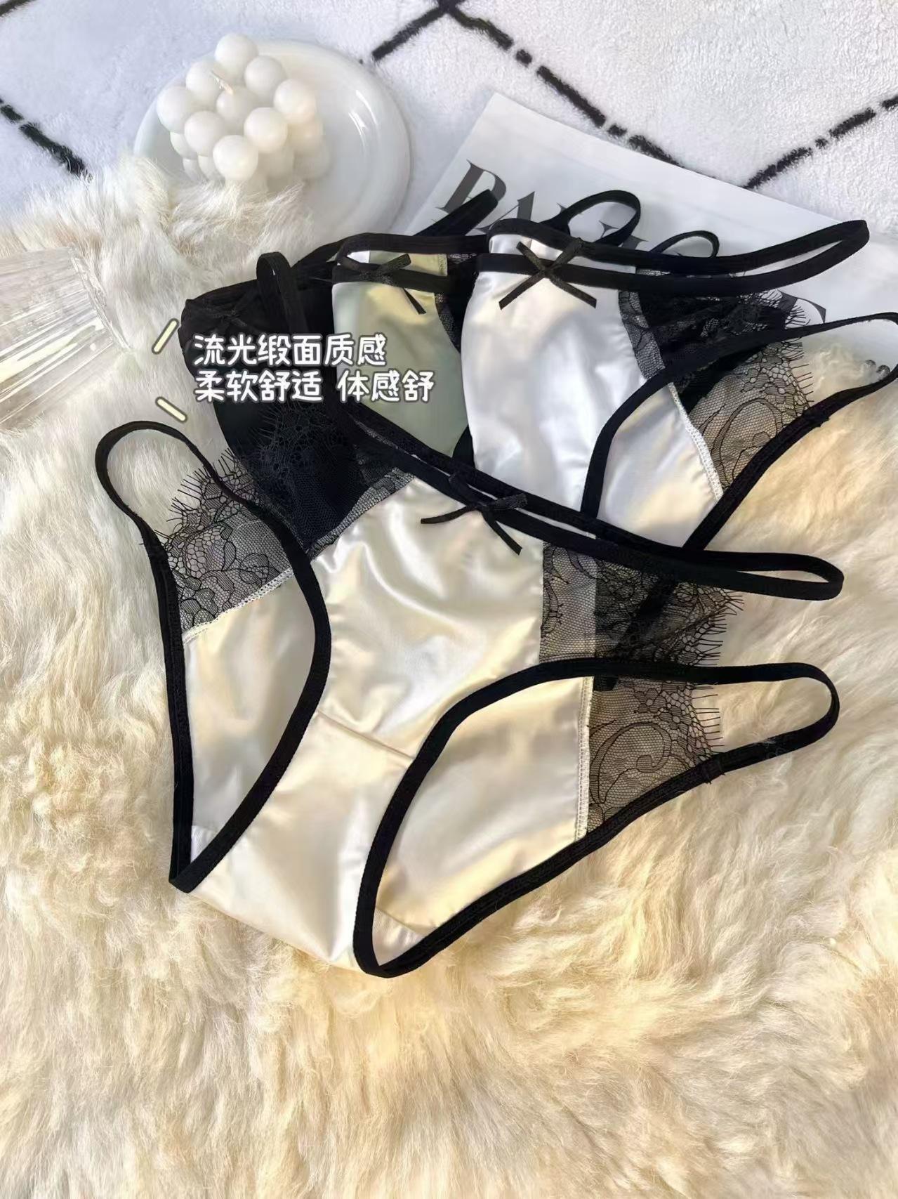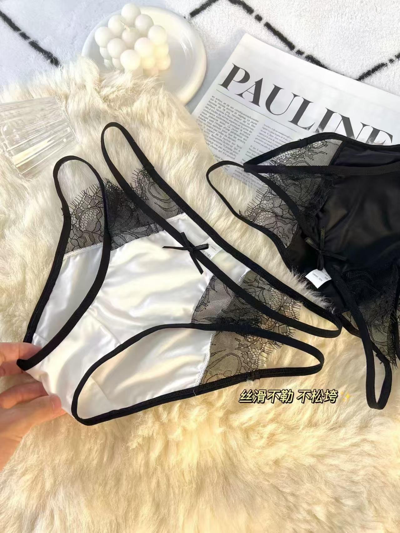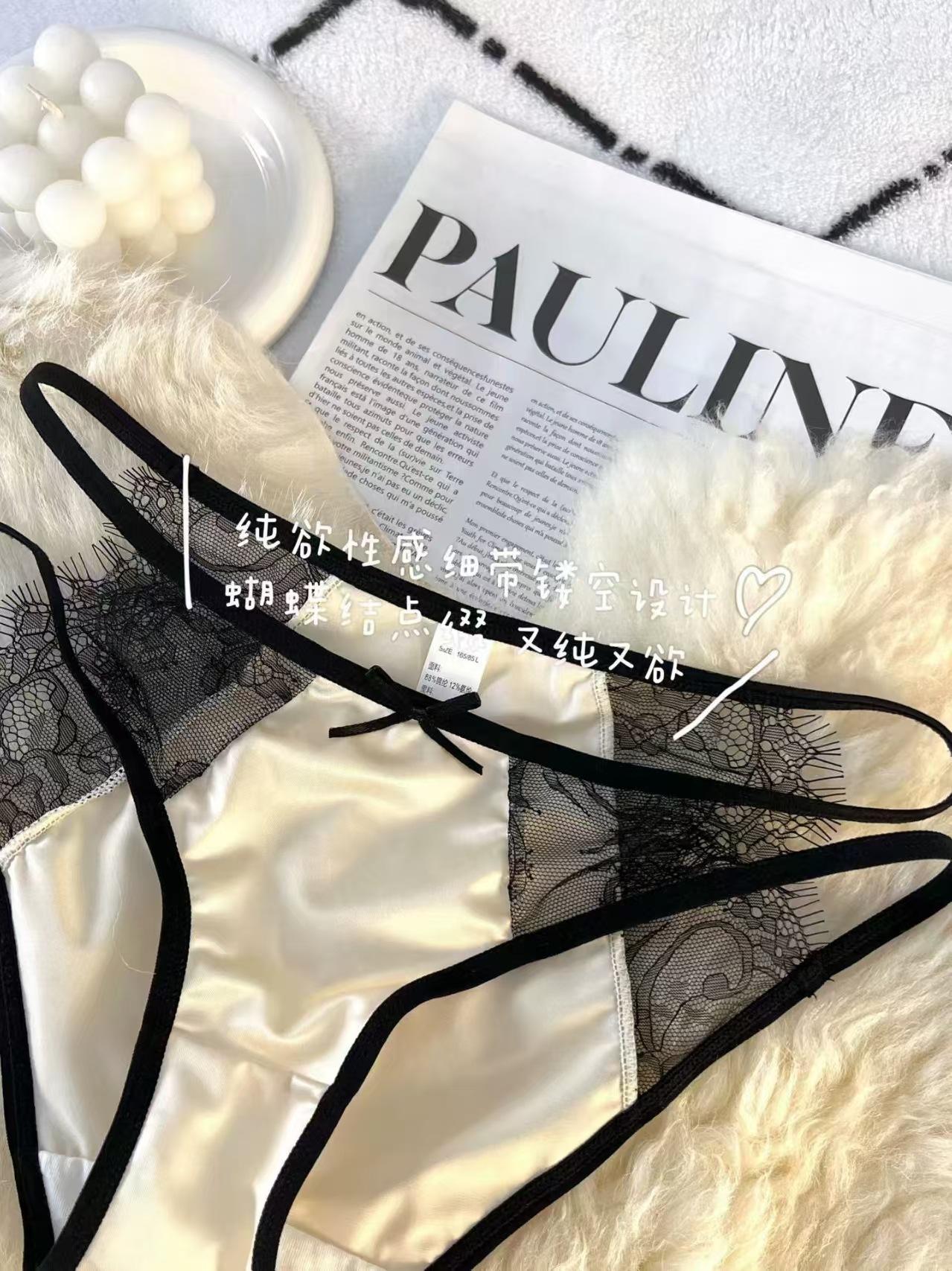 Ropa interior de encaje francés sexy para mujer, estilo puro deseo, de algodón puro, transpirable, fina, con aberturas, cinturón fino, cintura baja, bragas para niña.