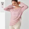 Cubierta de Yoga Transfronteriza de Manga Larga que Cubre la Cadera para Mujer, Camiseta Plisada con Cordón, Holgada, Casual, Ropa de Otoño para Danza, Fitness, Yoga