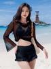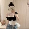 [2 colores] Nuevo traje de baño vintage americano a cuadros con escote en forma de corazón, sexy, de tres piezas, para mujer, bikini de vacaciones