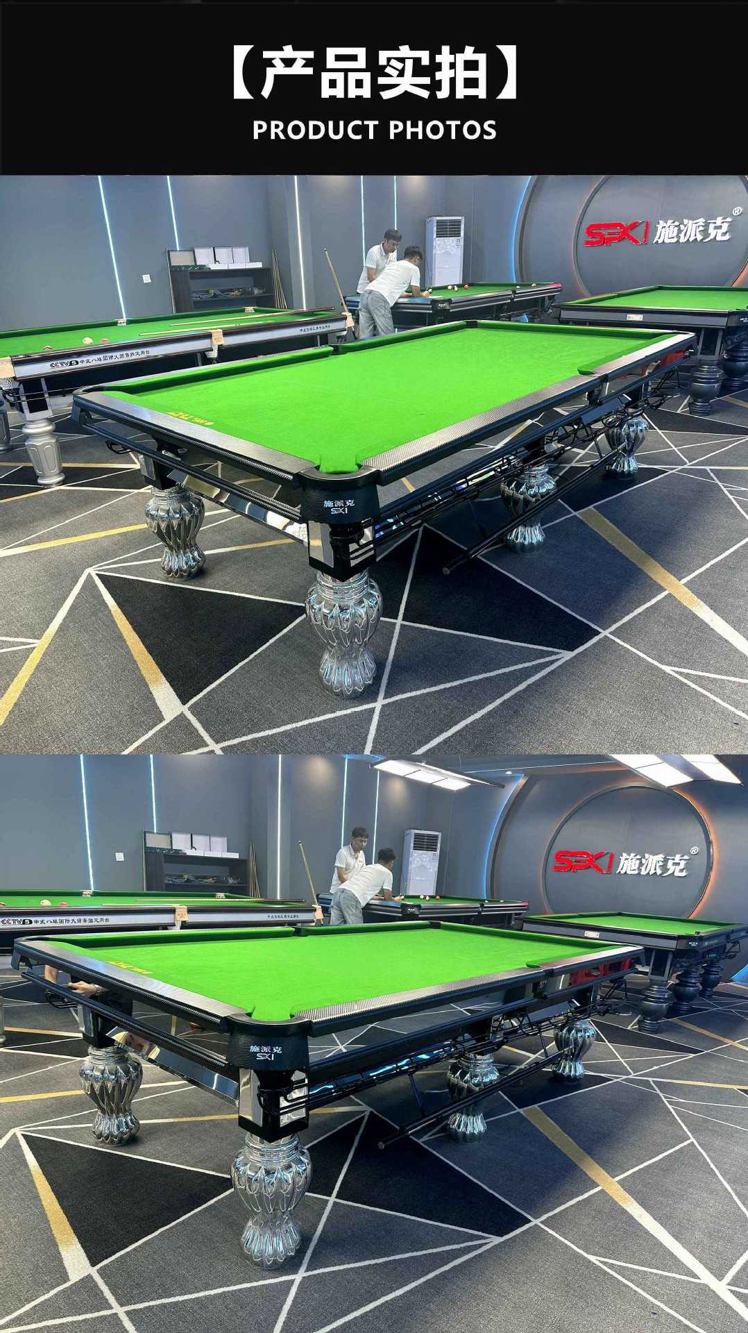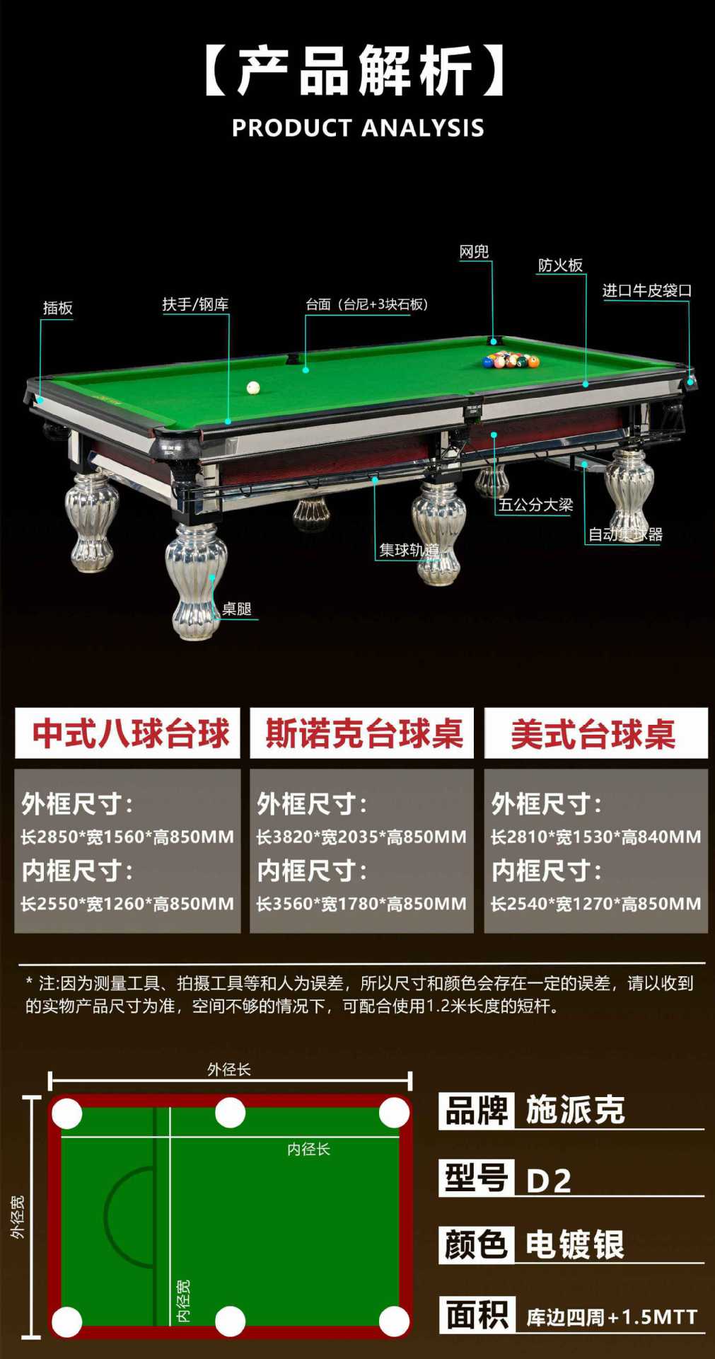 Mesa de billar comercial con ocho bolas de billar chinas negras estándar, serie D2, con baño de plata, para sala de baile, club, banco de acero especial, patas plateadas