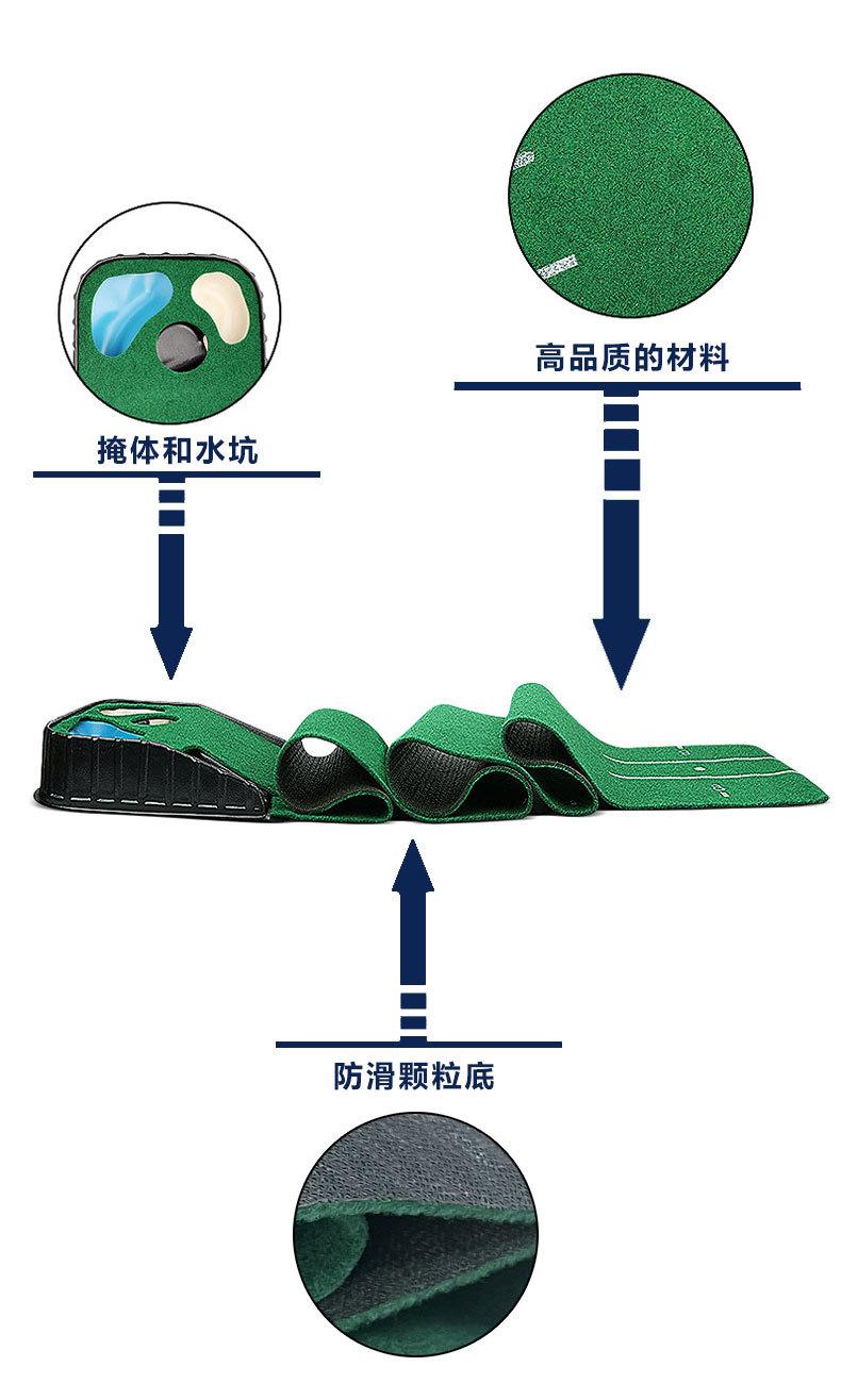 Venta directa de fábrica: dispositivo de práctica de putt de golf para interiores con base de goma, alfombra de putt y suministros de golf.