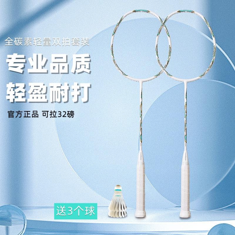 Juego de Raquetas de Bádminton Familiar Hogar Adulto Raqueta de Bádminton de Carbono Completo Ligera 4U Raqueta de Bádminton de Entrenamiento Doble Raqueta