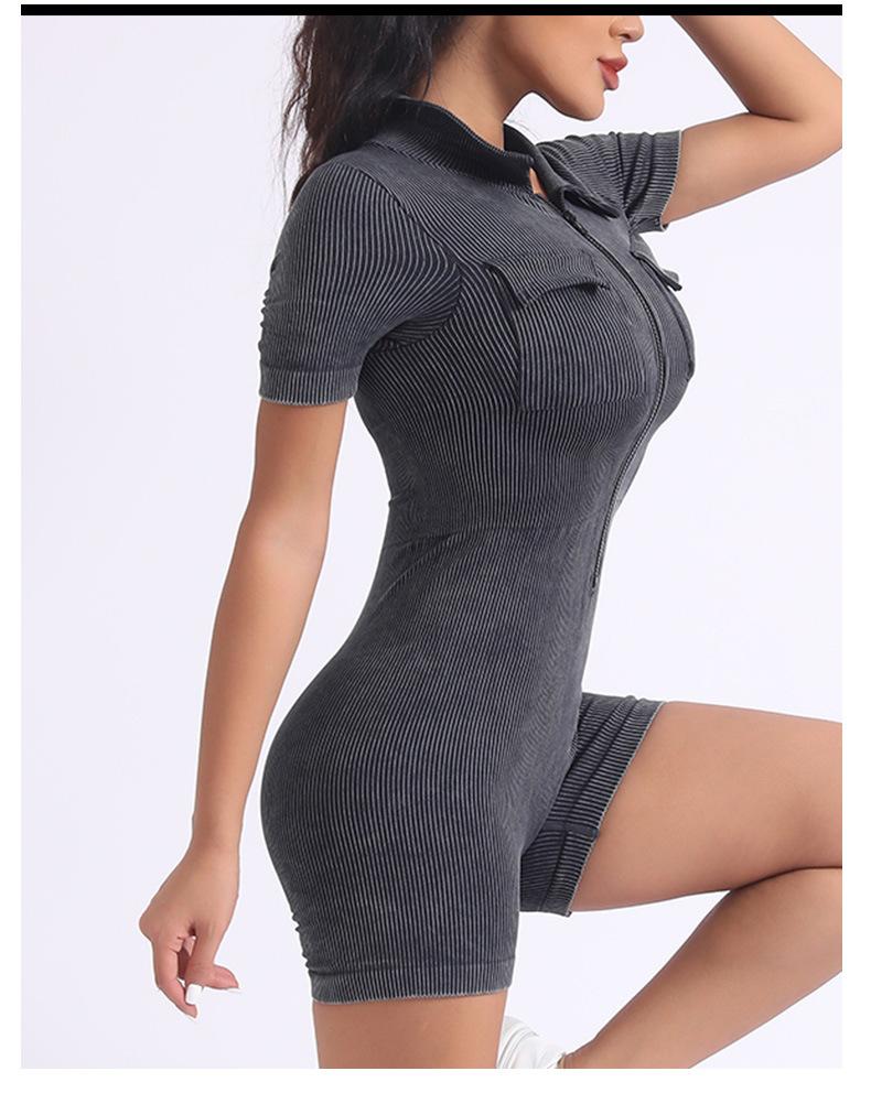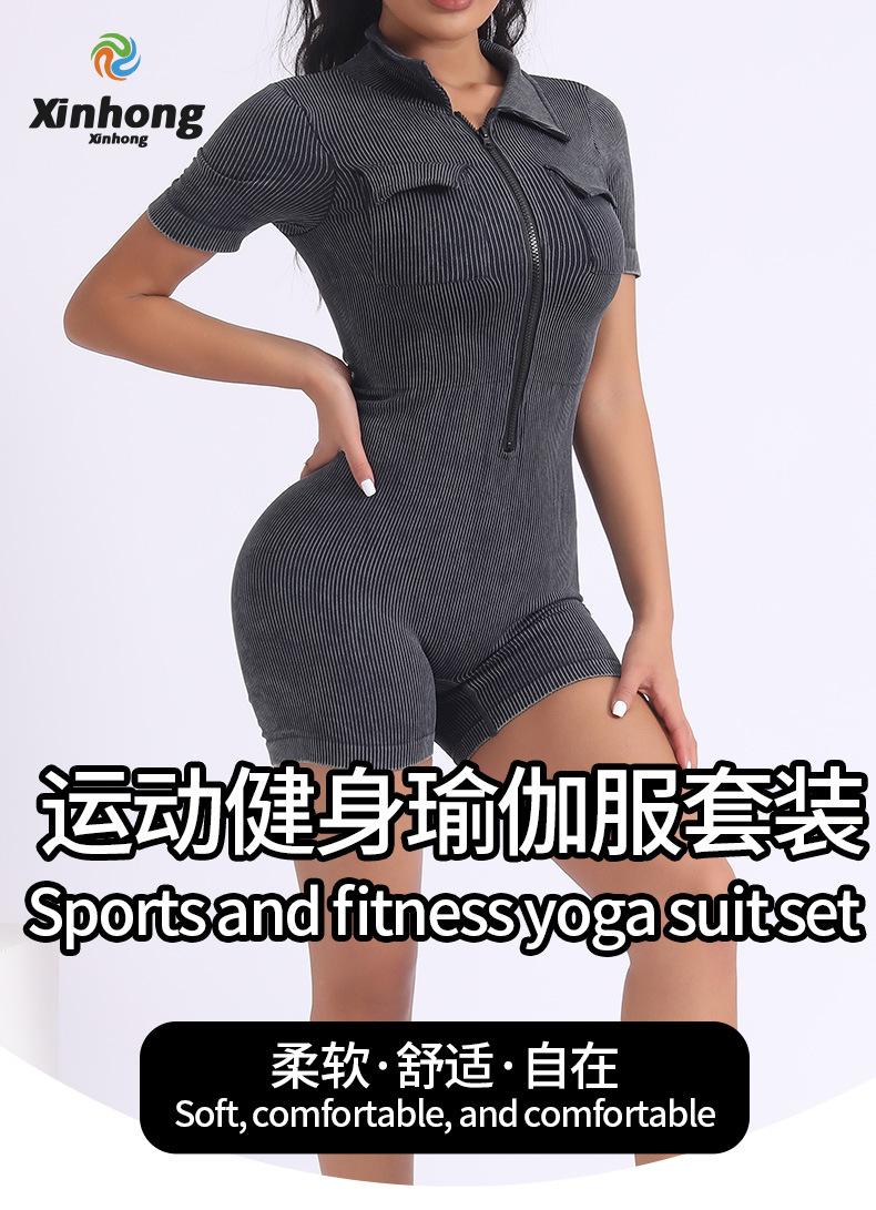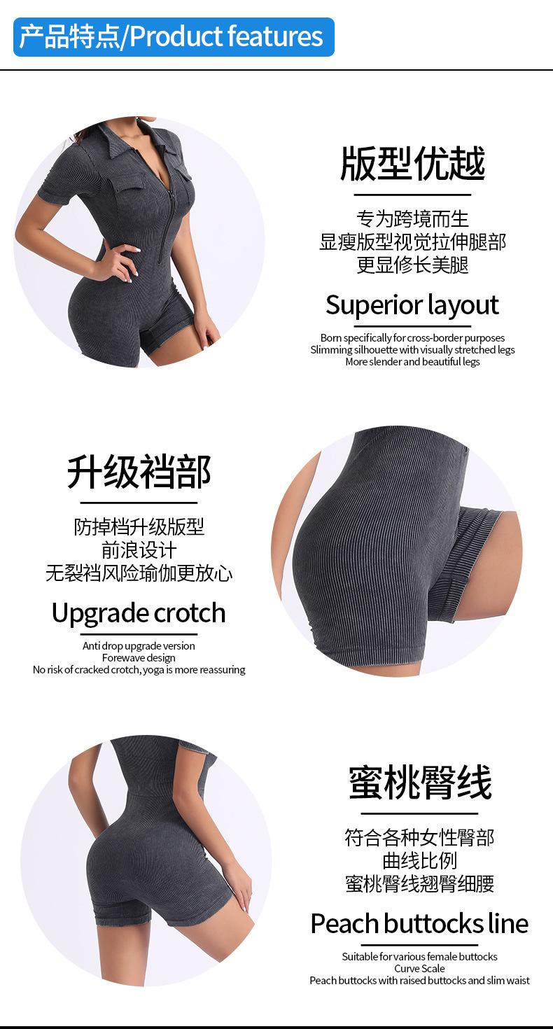 Traje de yoga de una pieza con cremallera transfronterizo, nuevo, europeo y americano, para mujer, para correr, fitness, ajustado, deportivo, de una pieza