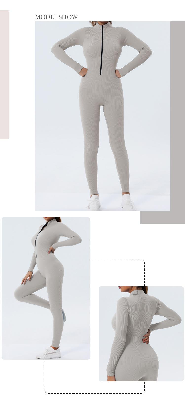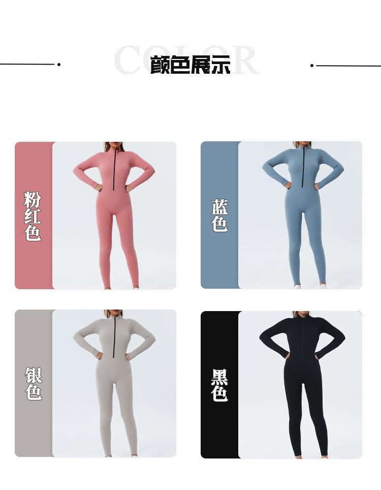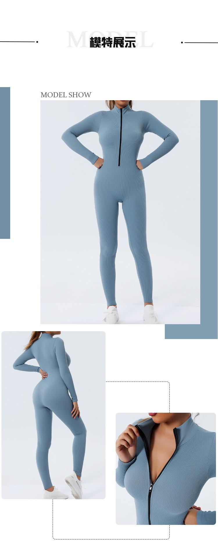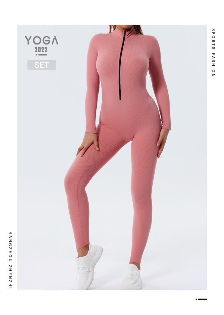 Amazon nuevo hilo de color sólido ajustado traje de ropa de yoga de una pieza danza yoga fitness cremallera larga de una pieza