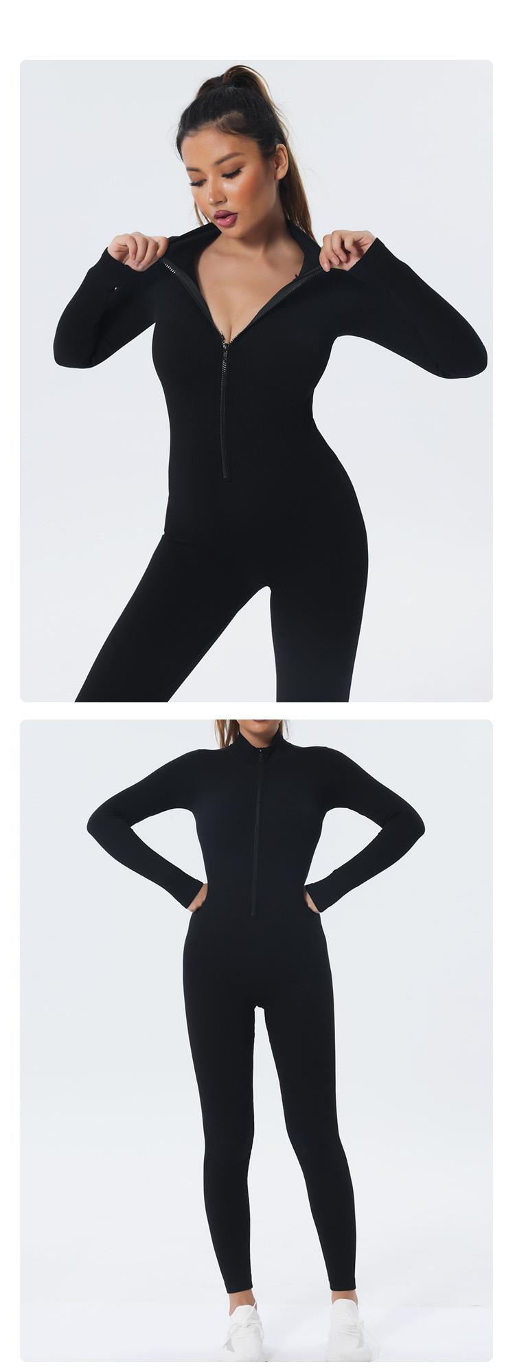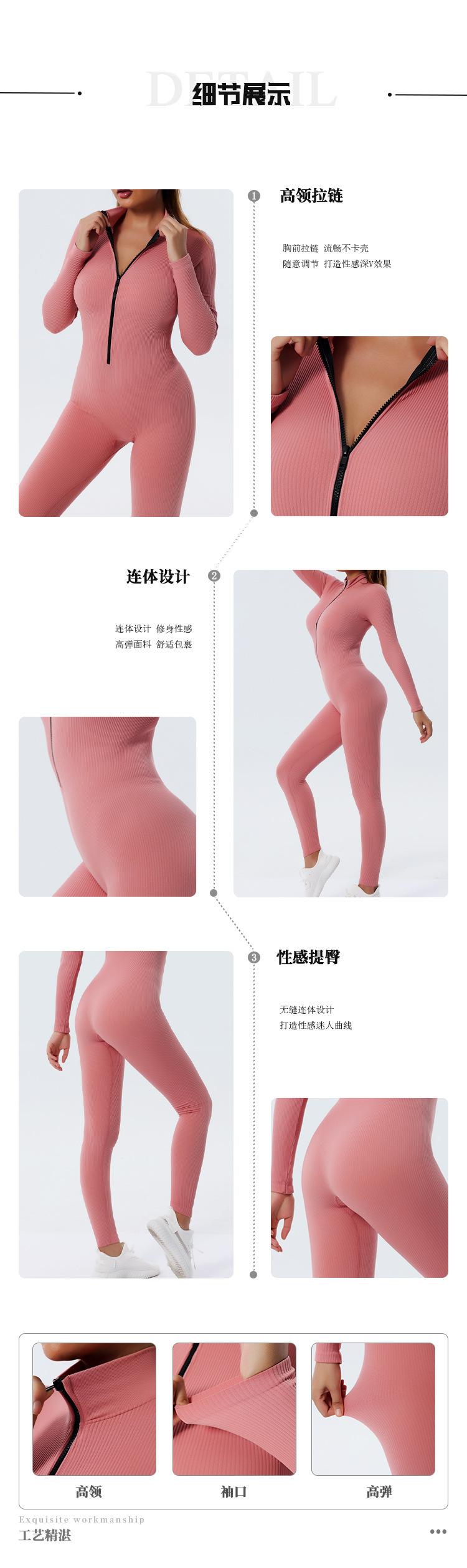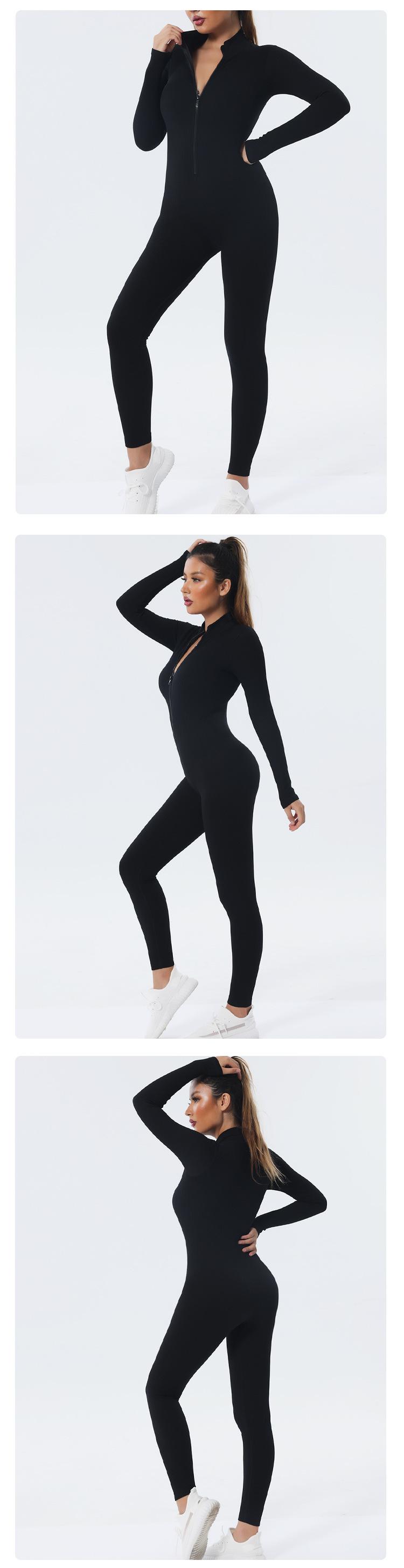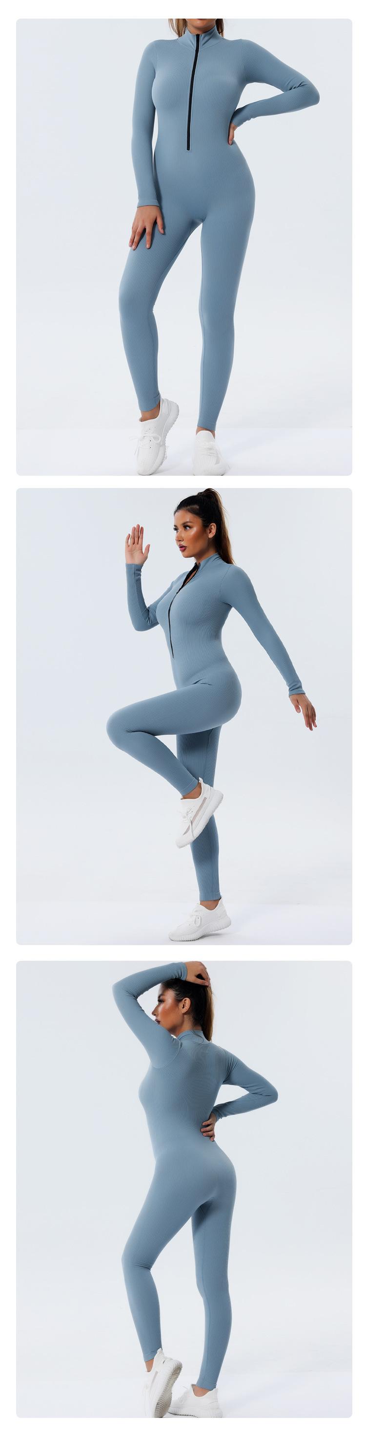 Amazon nuevo hilo de color sólido ajustado traje de ropa de yoga de una pieza danza yoga fitness cremallera larga de una pieza