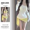 Traje de baño Pure Desire de verano, nuevo, adelgazante, de aguas termales, con escote pequeño, push-up, bikini dividido, conjunto de tres piezas para vacaciones en la playa.