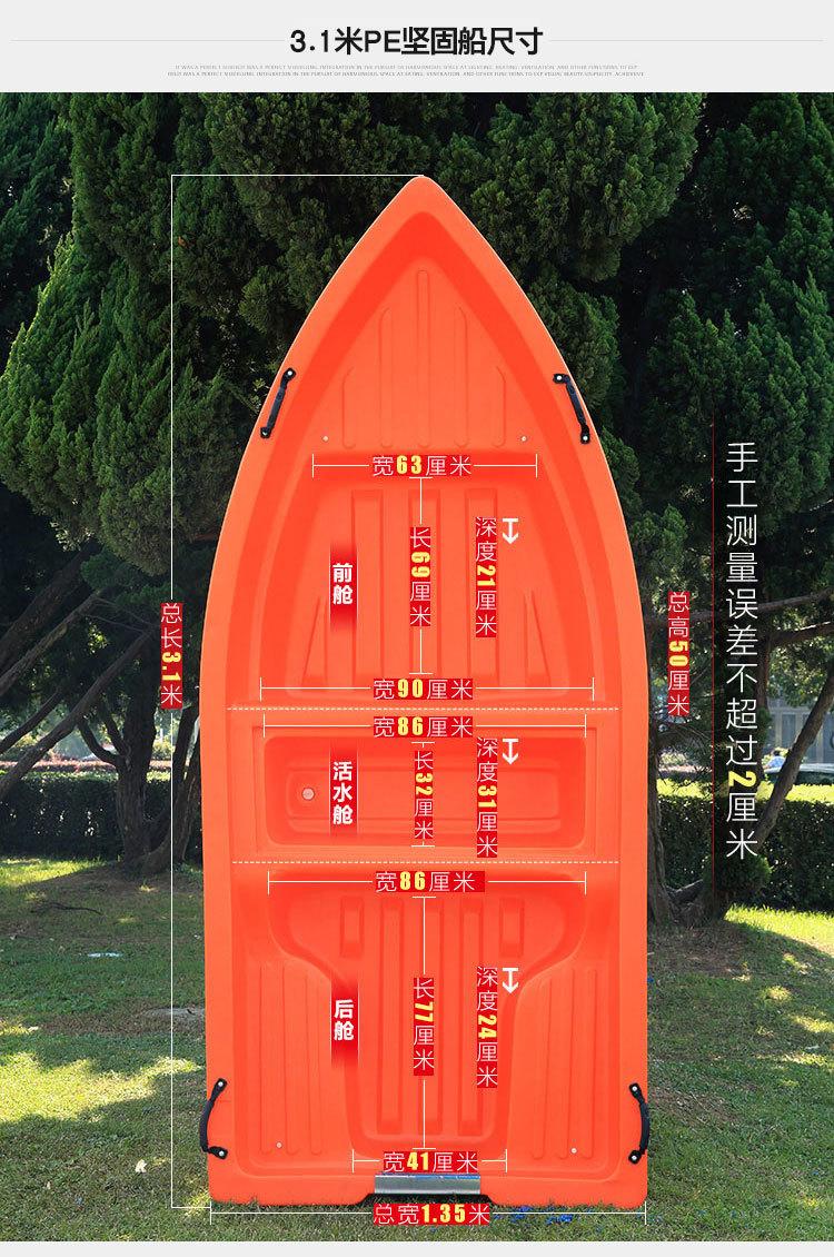 Barco de pesca de plástico PE de doble capa, barco de pesca de plástico engrosado, barco de limpieza de cría