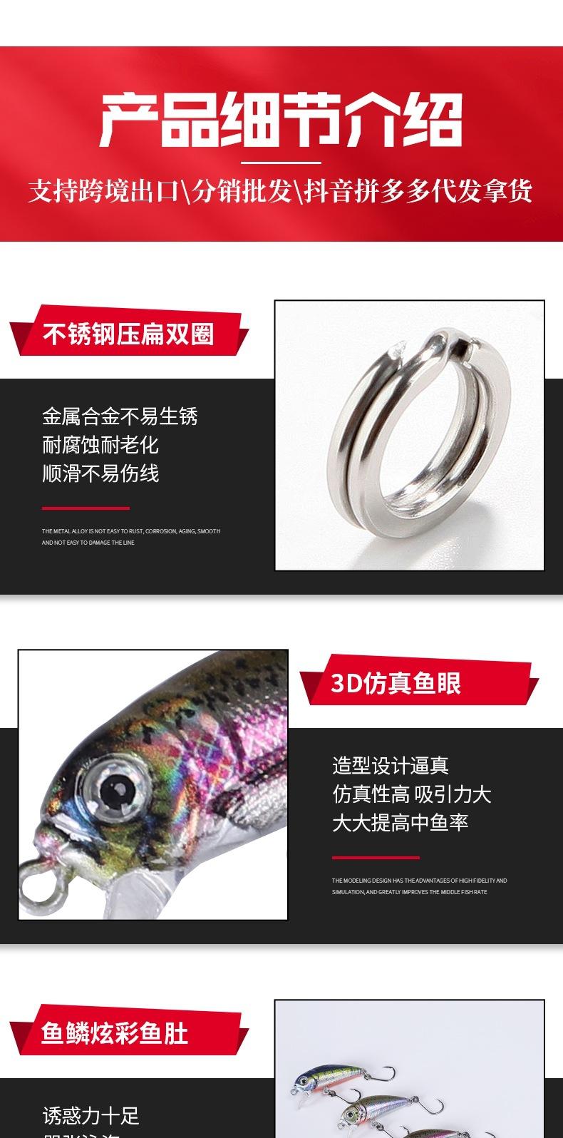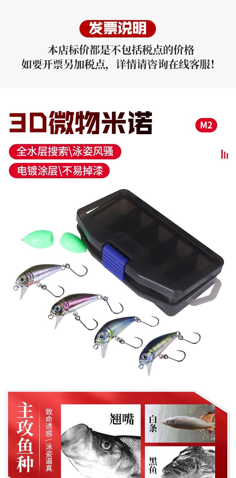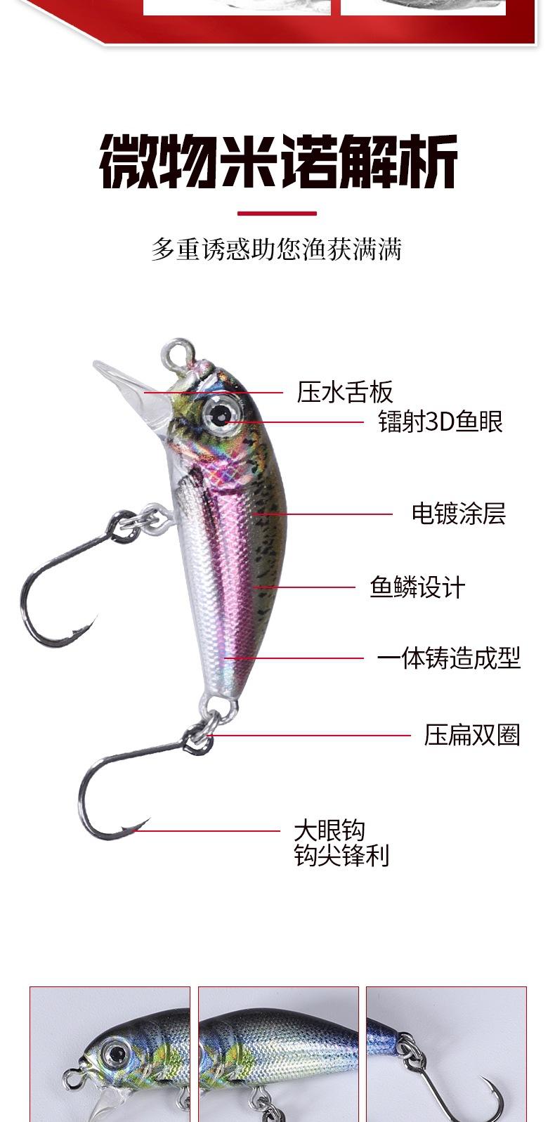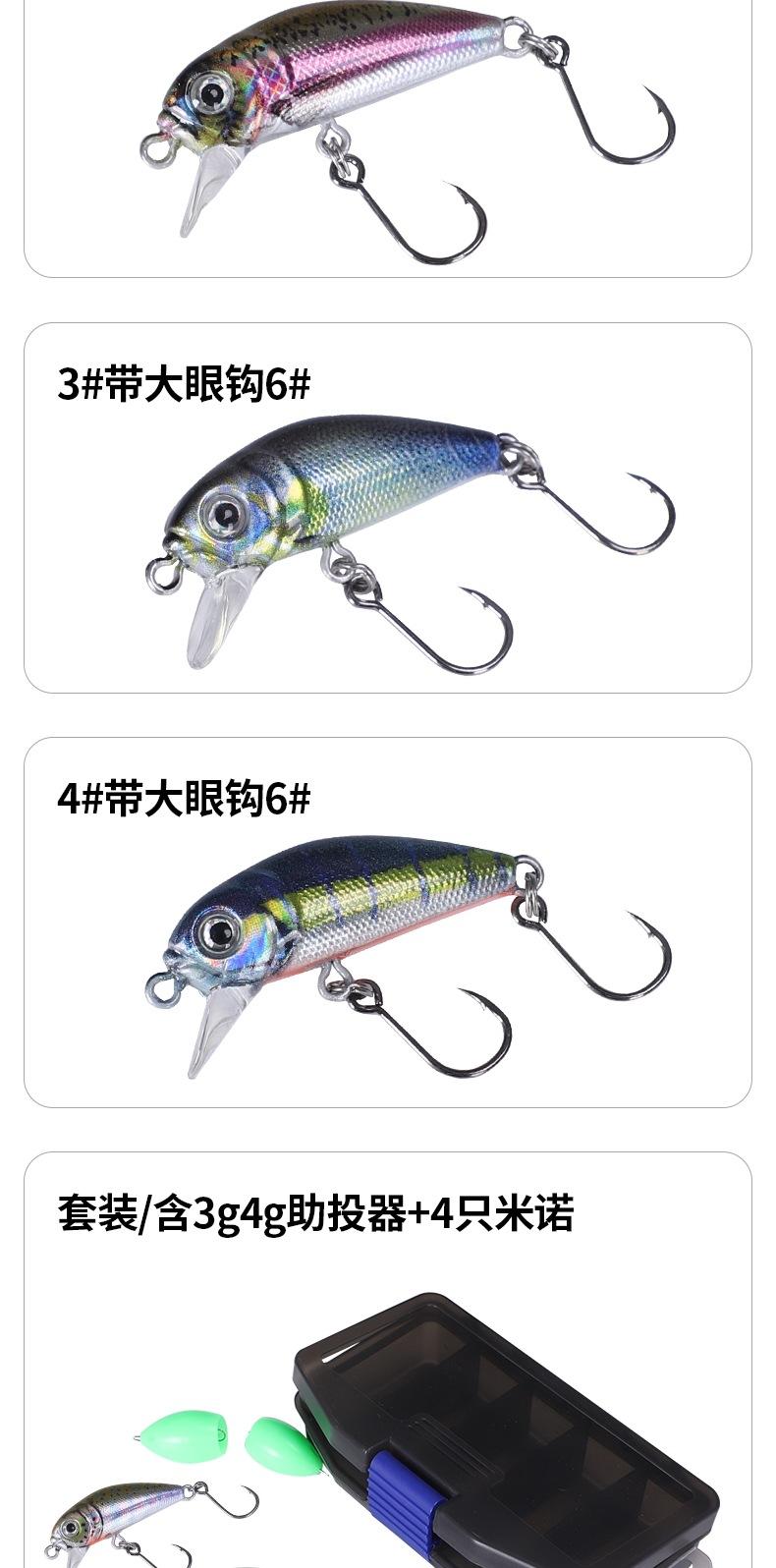 Comercio exterior transfronterizo, nuevos productos, venta al por mayor, cebo 3D micro-Mino Luya, anzuelo de ojo grande, 4 cm, 2,5 g, boca amartillada, tira blanca, cebo falso