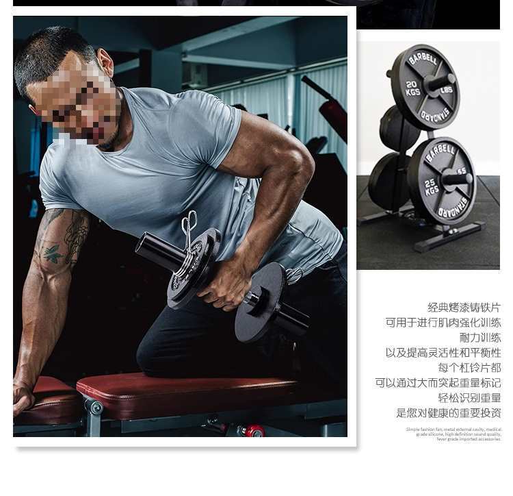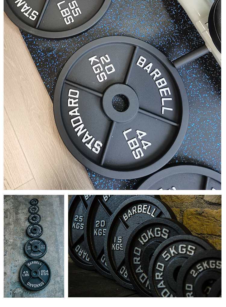 Barra con mancuernas de hierro fundido con orificio grande y cuatro costillas para uso doméstico, ideal para hombres, con barra olímpica estándar y contrapeso adhesivo.