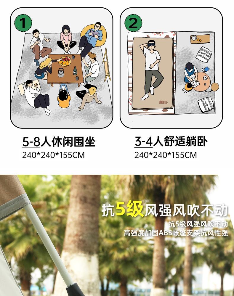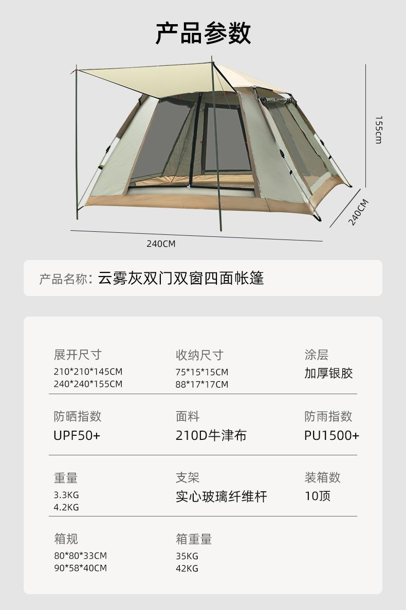 Cloud gray four-sided tent (3-4 people 210*210*145cm), Cloud gray four-sided tent (5-8 people 240*240*155cm)
