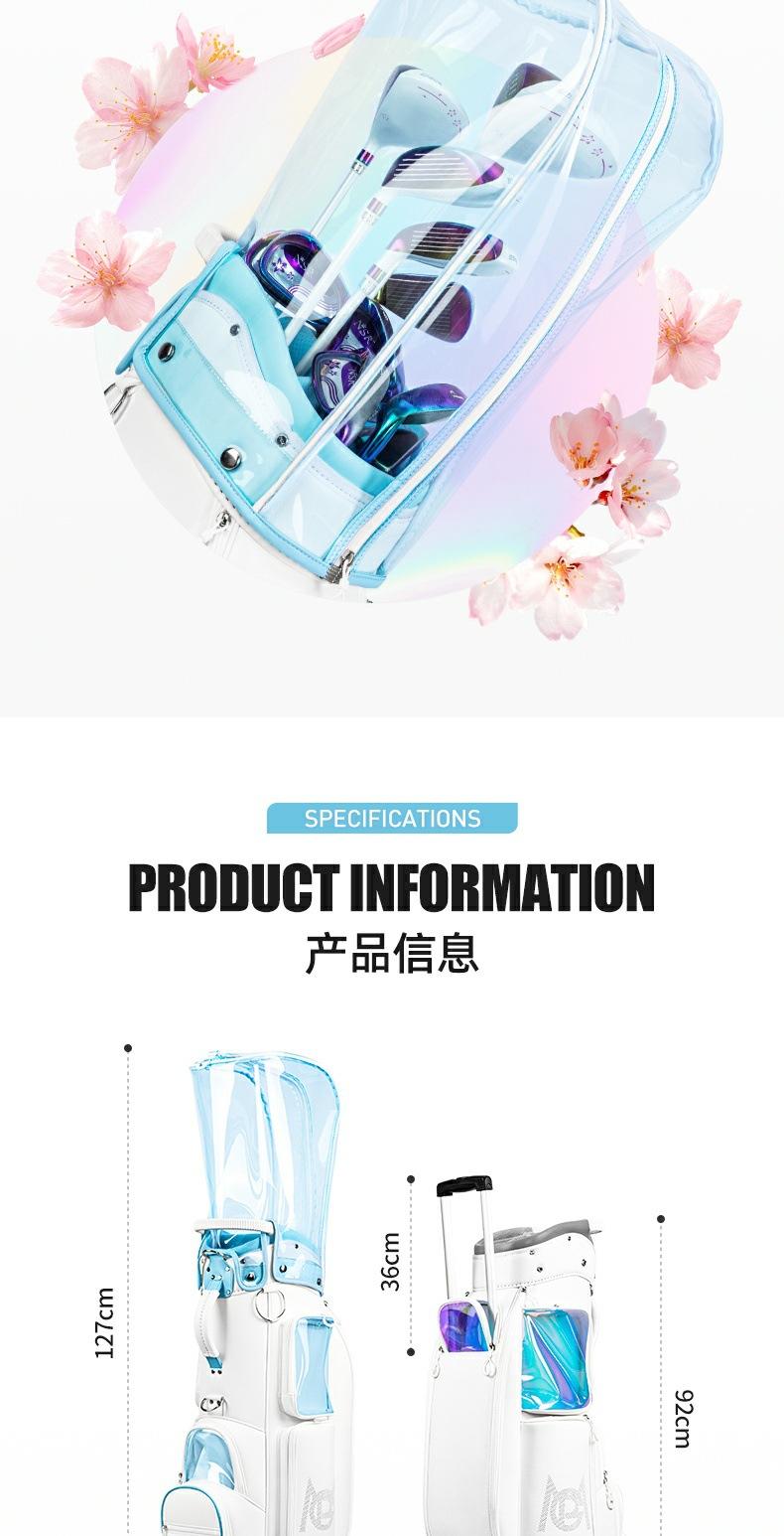 | Descripción del Producto | 1 | La funda de bolsa de golf suave transparente, moderna y colorida, facilita la identificación de los artículos en la bolsa de golf y la comprobación del estado del equipo en cualquier momento. | ||