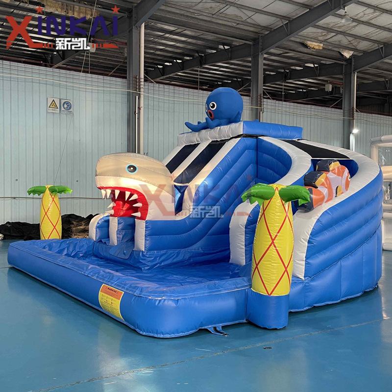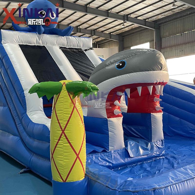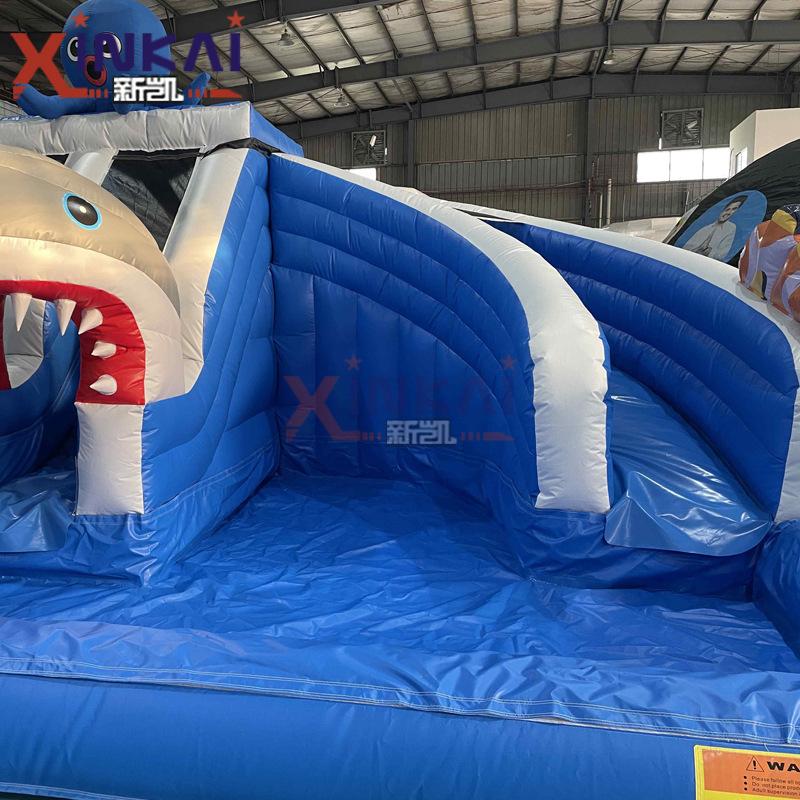 Tema de tiburón agua inflable escalada trampolín fuente inflable castillo para niños piscina castillo inflable con piscina de bolas