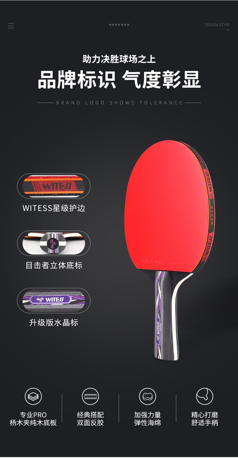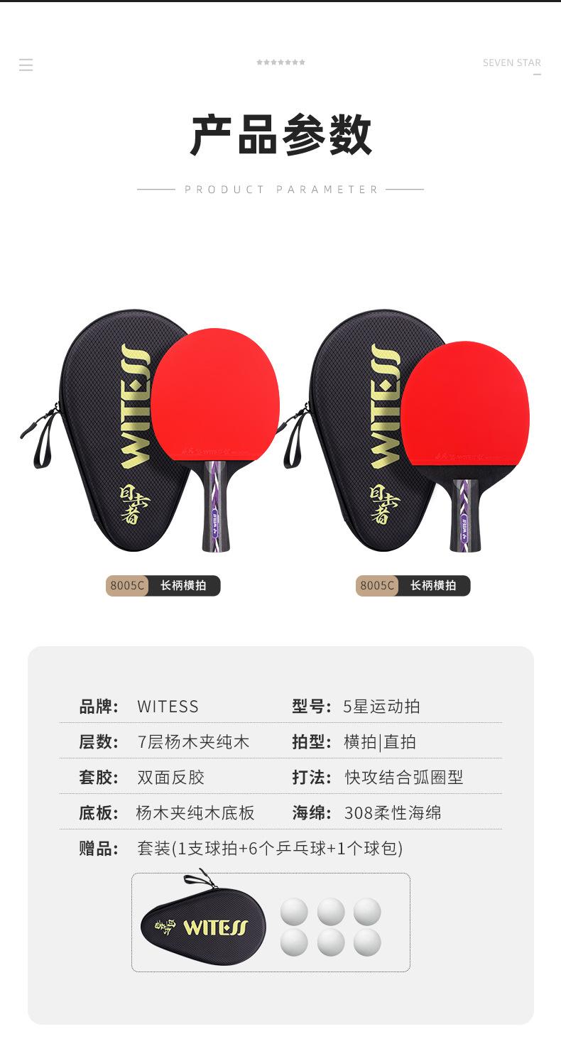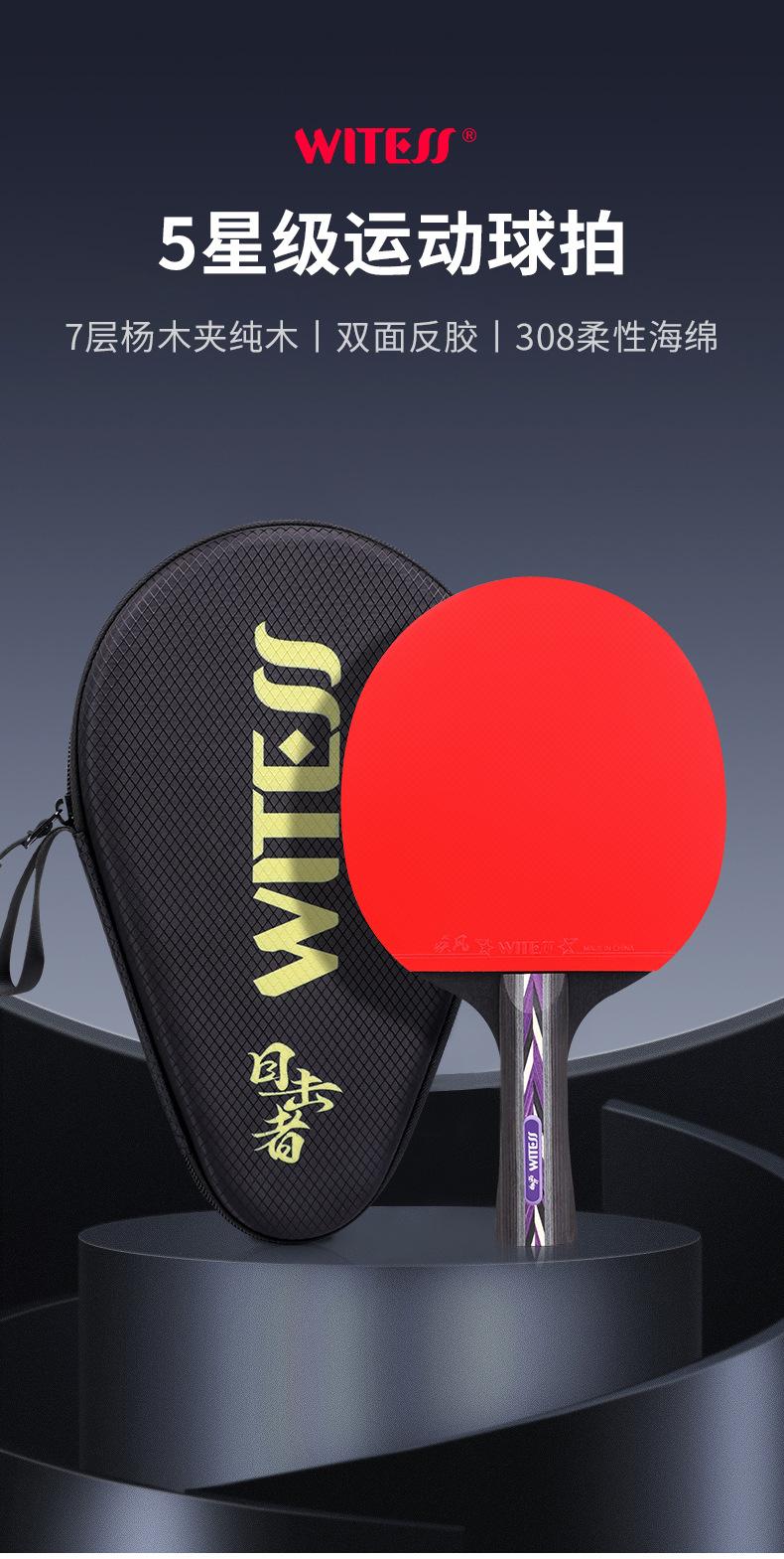 Raquetas de tenis de mesa WITESS Eyewitness para niños de primaria y secundaria, principiantes, 5 estrellas, mango largo, calidad profesional