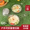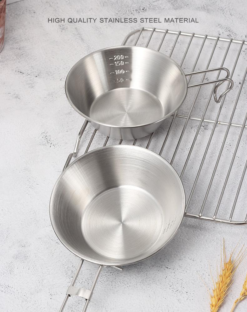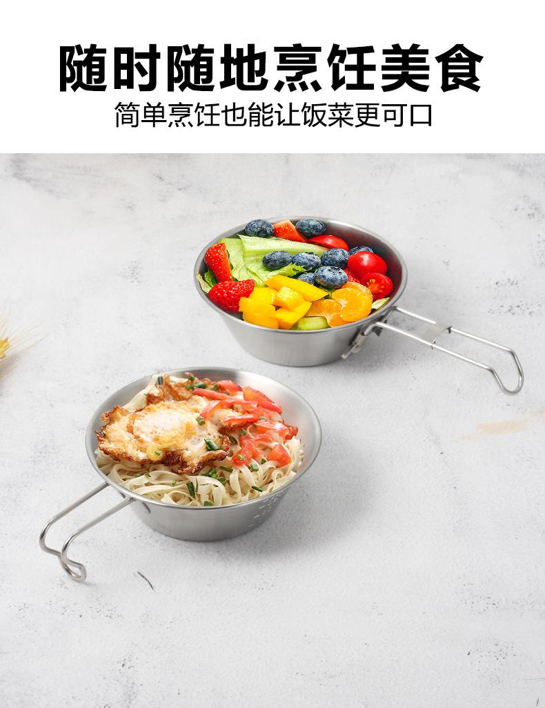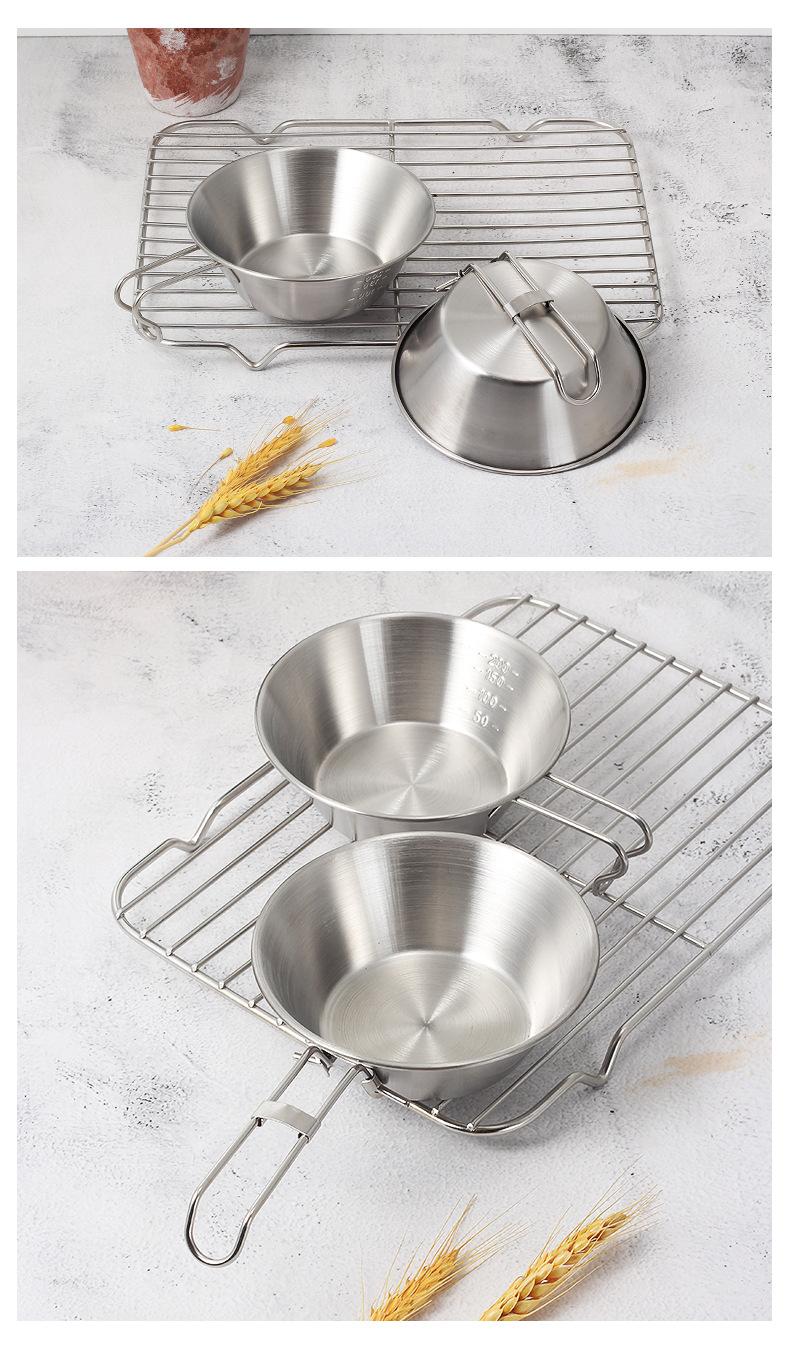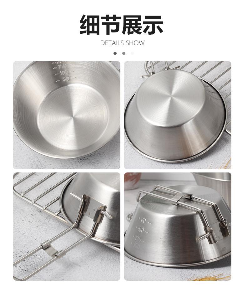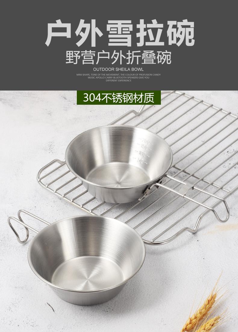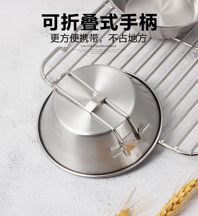 Estilo Camping al Aire Libre Acero Inoxidable 304 Tazón para Tirar Nieve Multifuncional Plegable Mango Fijo Tazón Coreano para Vino de Arroz Encurtidos