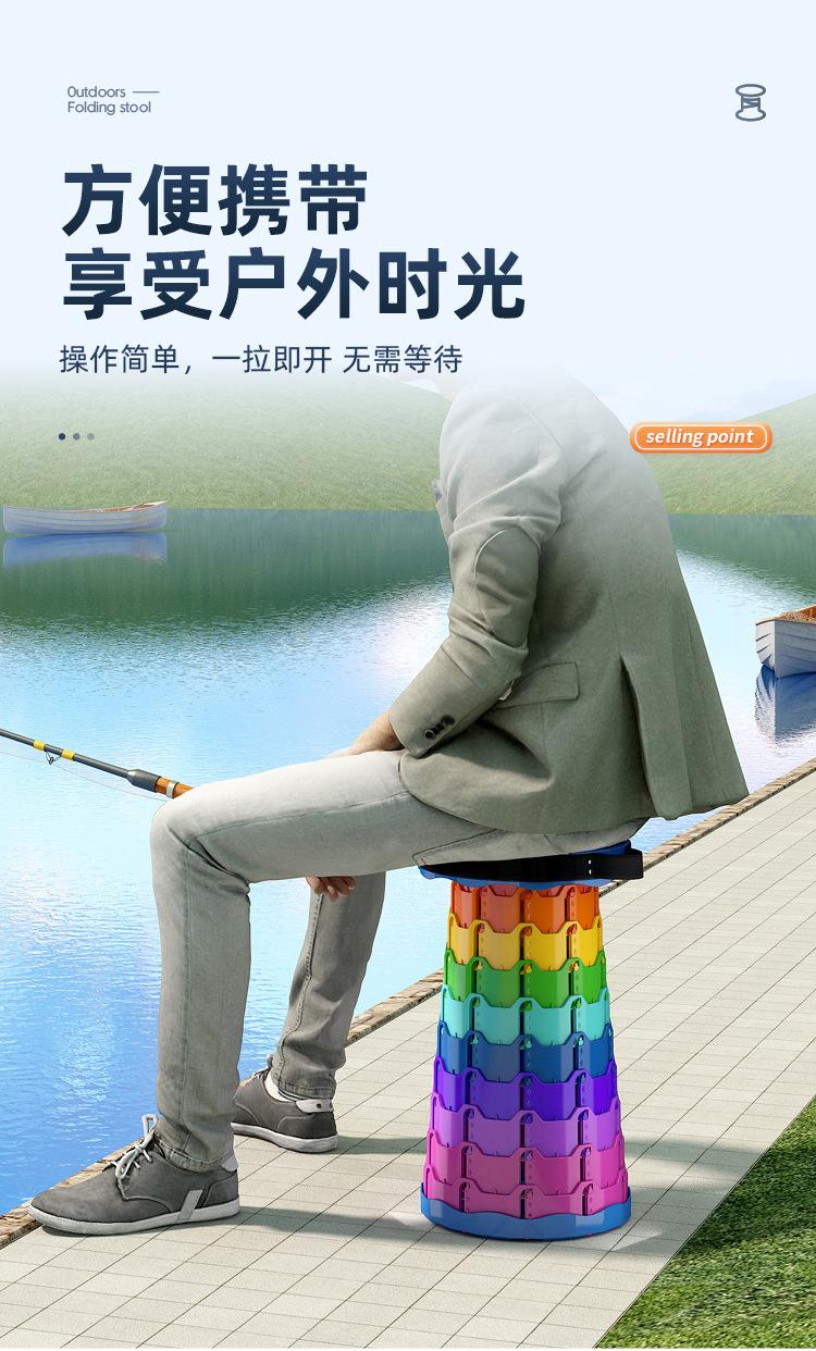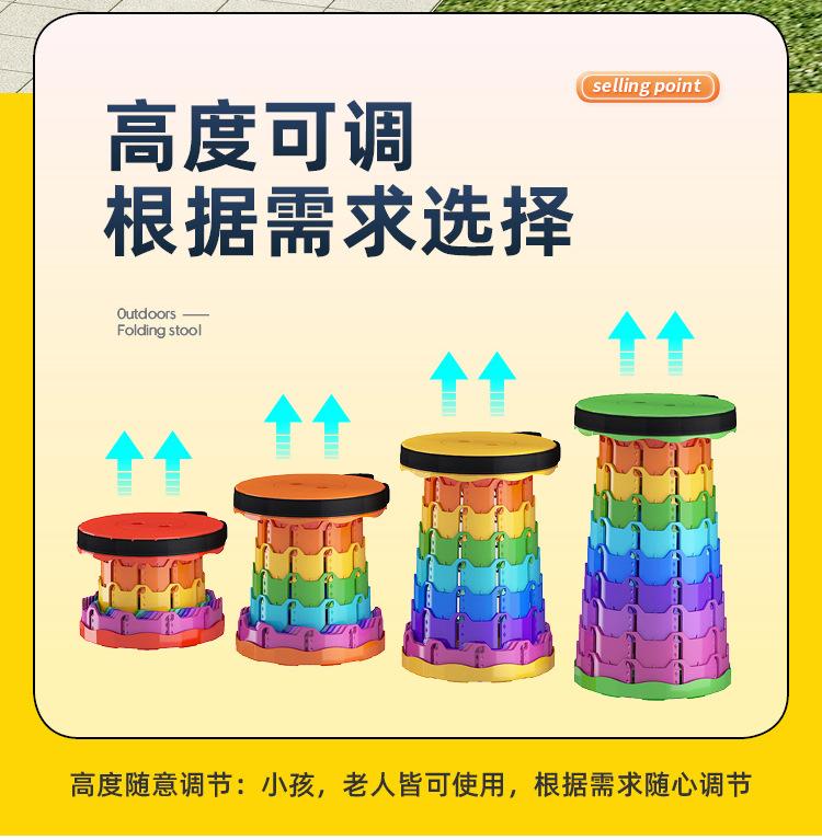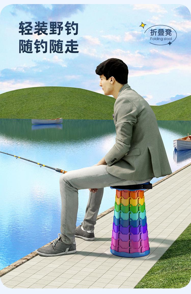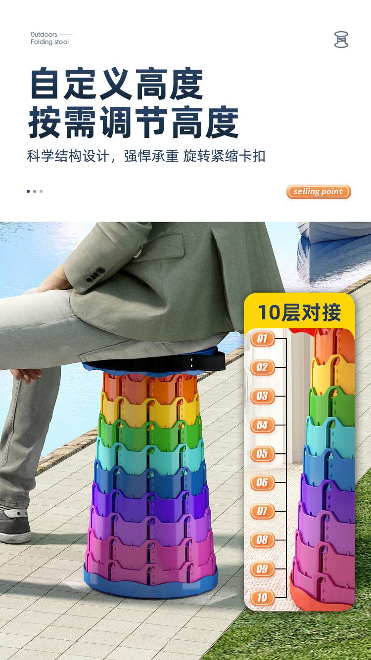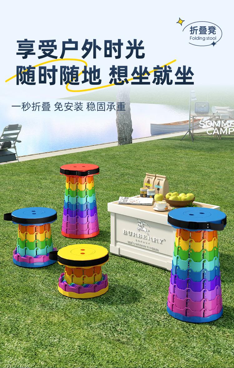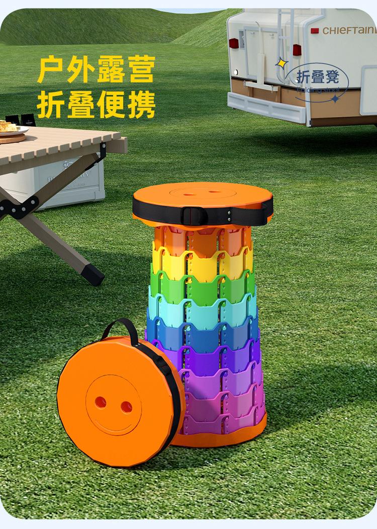 Taburete plegable arcoíris para exteriores, silla portátil, taburete telescópico arcoíris ajustable, taburete telescópico con forma de tren de pesca, taburete plegable