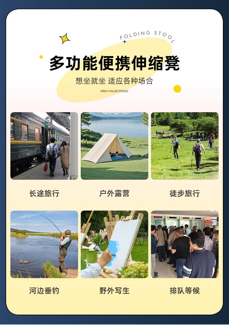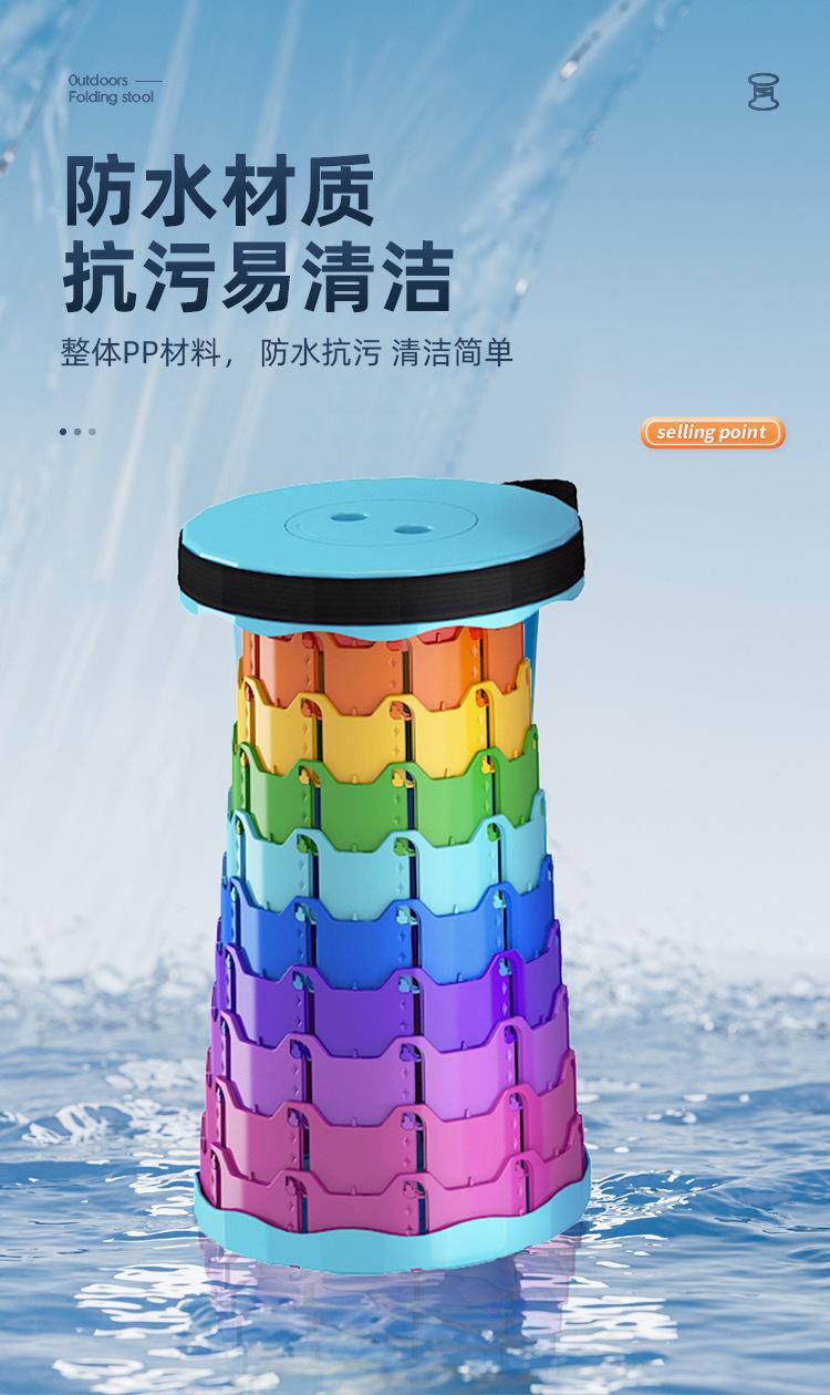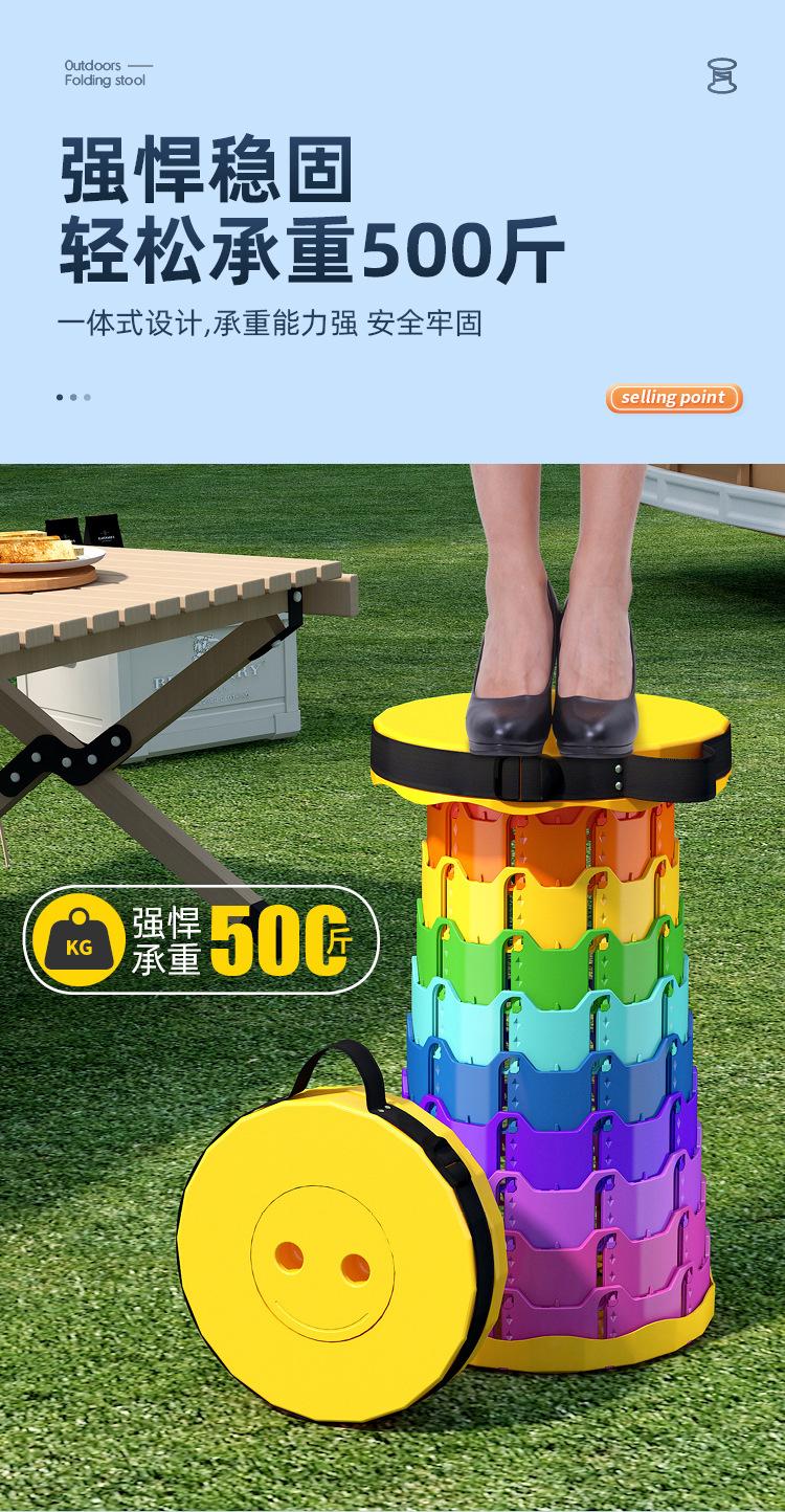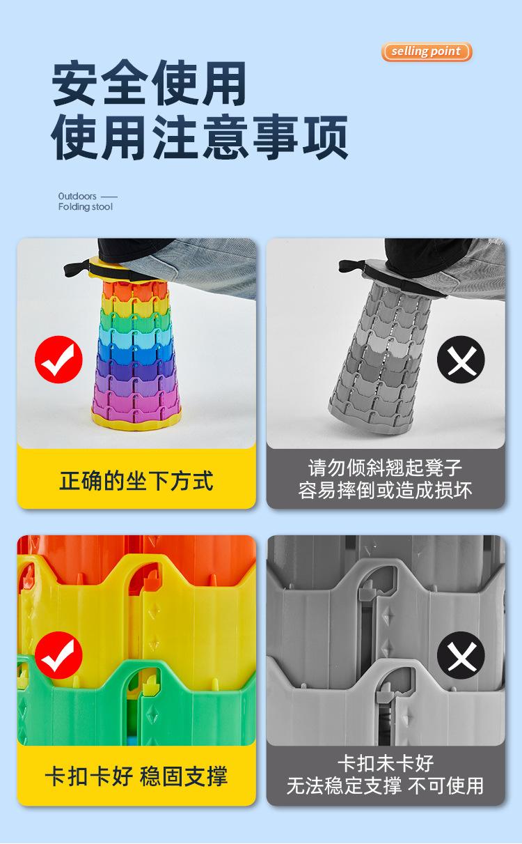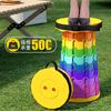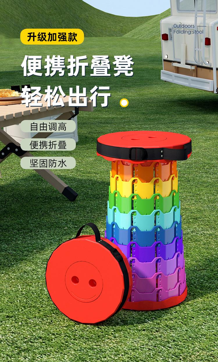 Taburete plegable arcoíris para exteriores, silla portátil, taburete telescópico arcoíris ajustable, taburete telescópico con forma de tren de pesca, taburete plegable