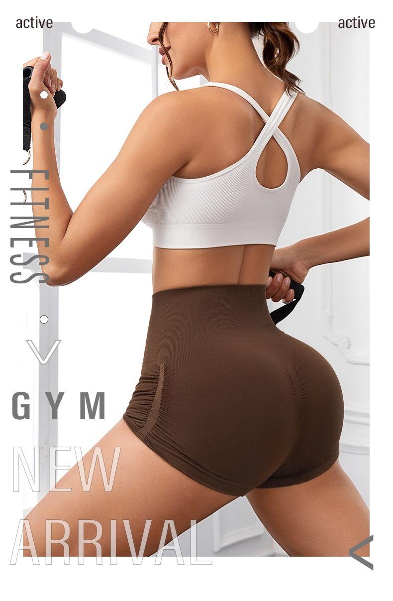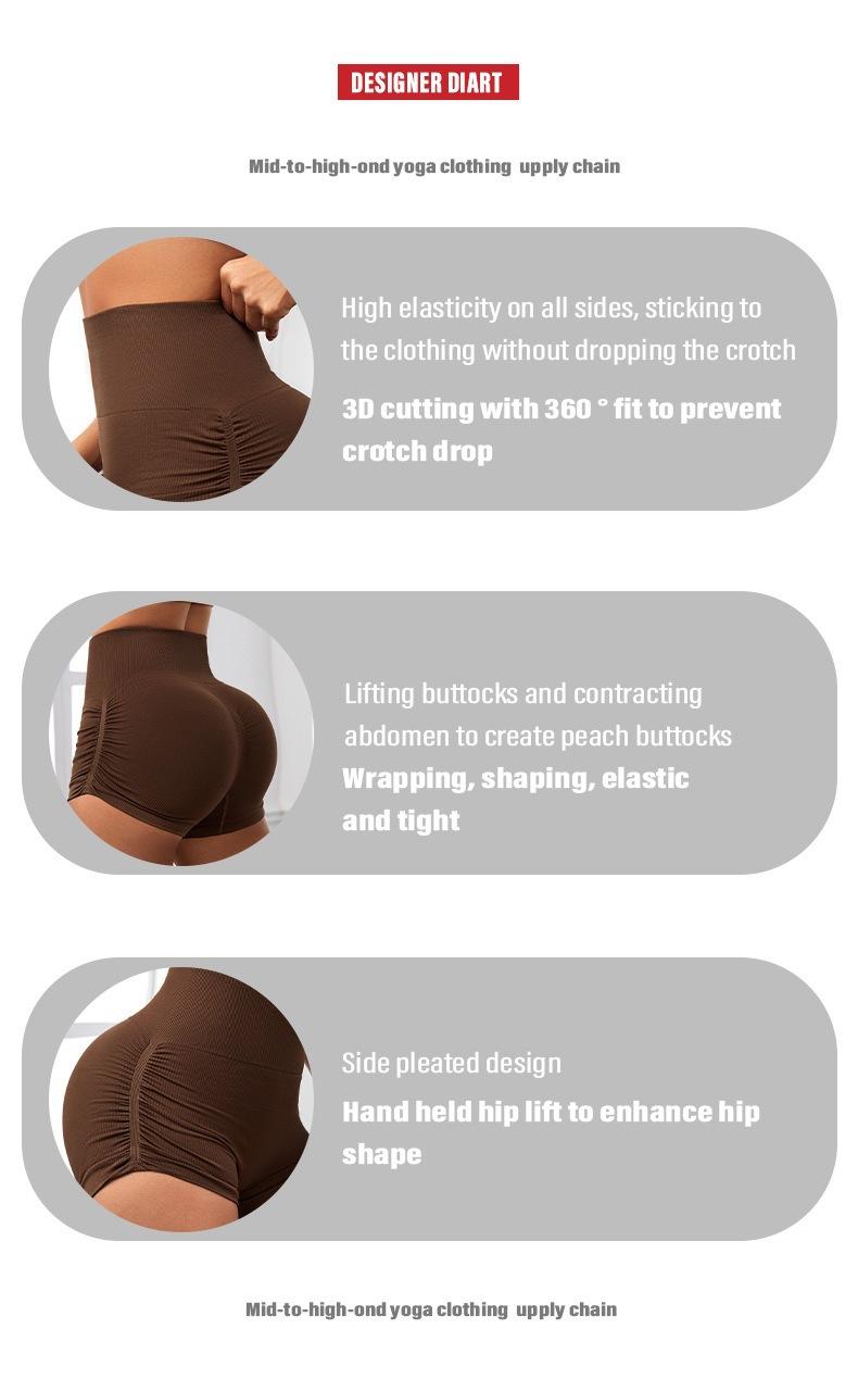 Pantalones de yoga con arrugas transfronterizas para mujer, cintura alta, cadera color melocotón, secado rápido, ajustados, para correr, fitness, pantalones de tres puntos, pantalones deportivos