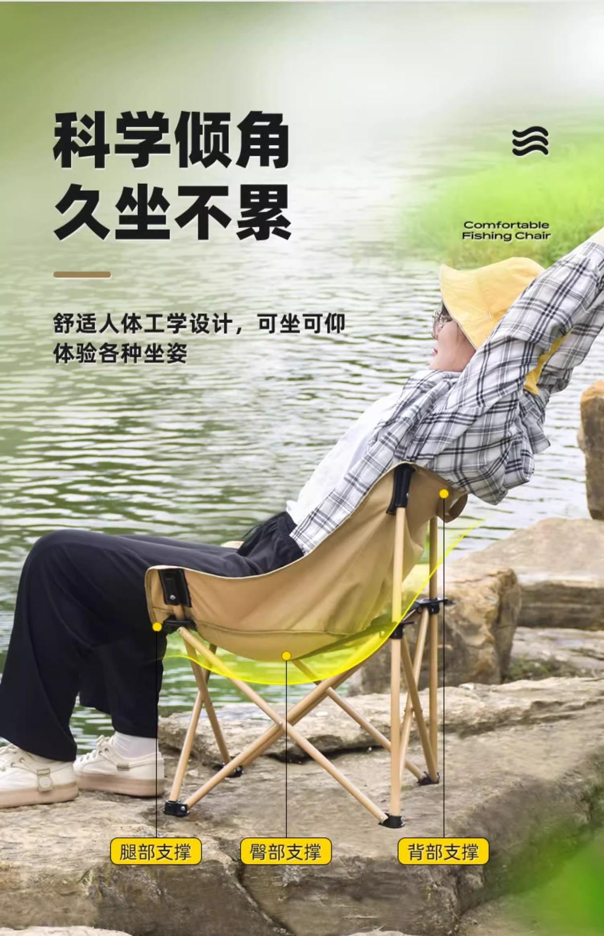 Silla de Pesca Plegable Alemana Multifuncional para Camping al Aire Libre Silla Luna Portátil para Camping Ocio Respaldo Taburete de Pesca