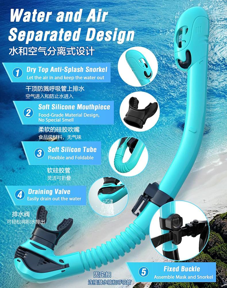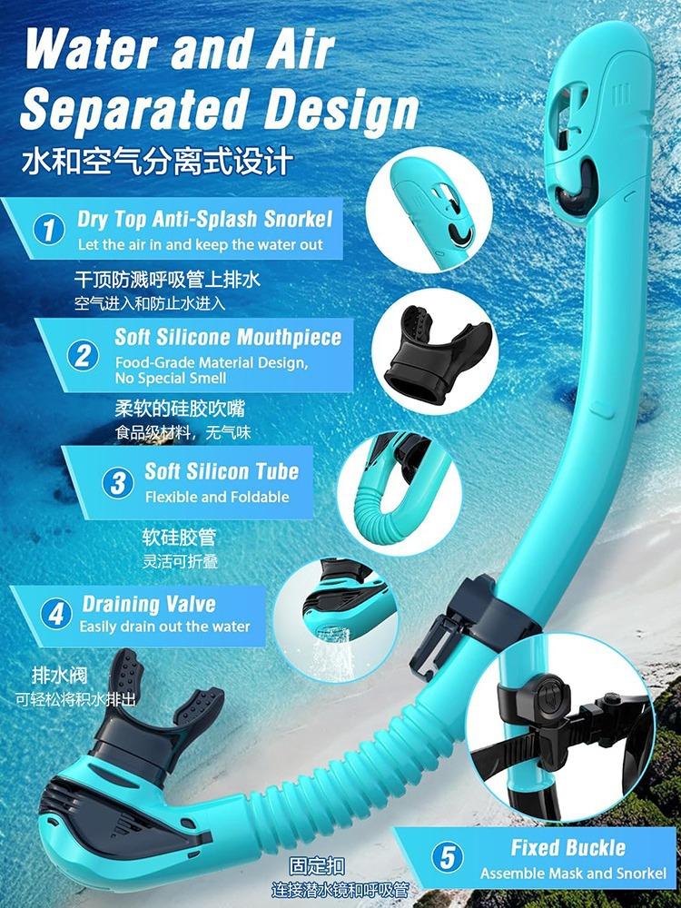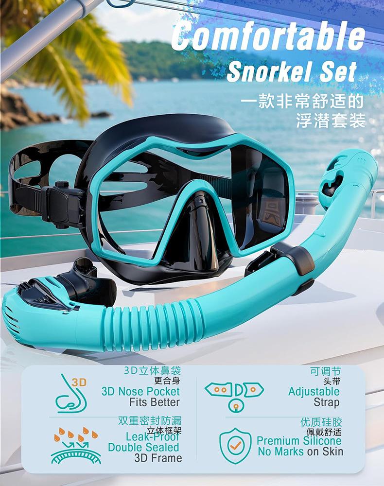 24 Nuevo Traje de Snorkel para Adultos Transfronterizo Marco Grande Protección para la Nariz Antiahogo Gafas de Buceo Tubo de Snorkel Totalmente Seco Equipo de Natación