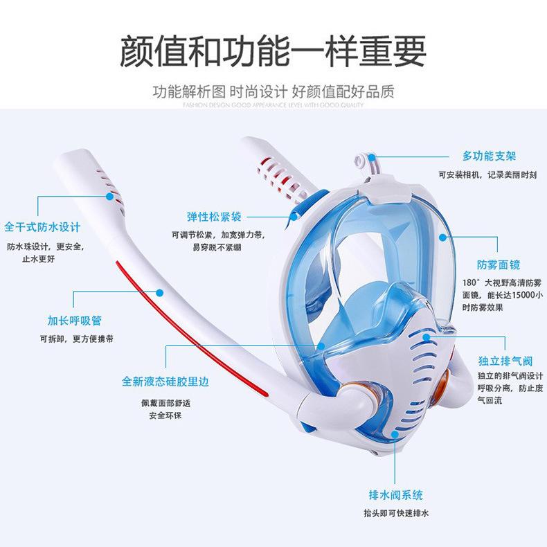 Máscara de buceo de doble tubo, nueva, completamente seca, tipo GoPro, máscara de silicona para esnórquel para niños, gafas de natación, equipo de natación