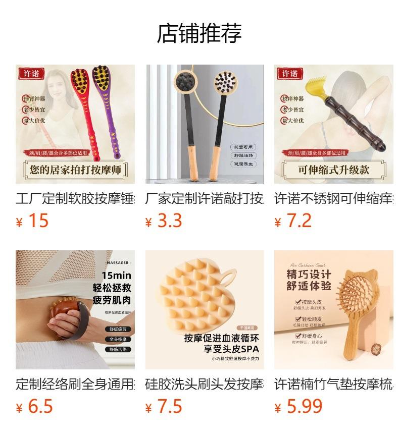 | | Xu Nuo - Artefacto para dar palmaditas en la espalda con meridianos, martillo de percusión para la salud, palo de masaje para dar palmaditas, tabla para dar palmaditas en la espalda, dispositivo para dar palmaditas | | ¥11.80 6146 unidades vendidas | | | | | Peine de masaje de silicona Xu Nuo, cepillo de masaje para la salud de los meridianos, masaje del cuero cabelludo, relajación muscular, cepillo de meridianos de silicona | | ¥8.00 1220 unidades vendidas | | | | | Xu Nuo - Palo de masaje de madera maciza para el cuidado de la salud, martillo de masaje de percusión, dispositivo de golpeteo de meridianos, sin necesidad de pedir ayuda, masajeador de cuerpo completo de mano | | ¥6.40 809440 unidades vendidas | | |