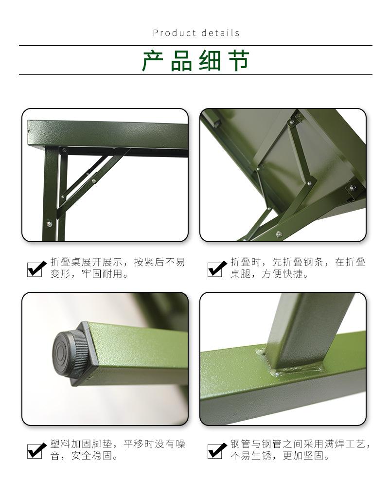 Mesa de Trabajo Plegable Verde para Exterior Mesa Plegable Portátil Mesa de Entrenamiento Comedor Mesa de Mando de Hierro