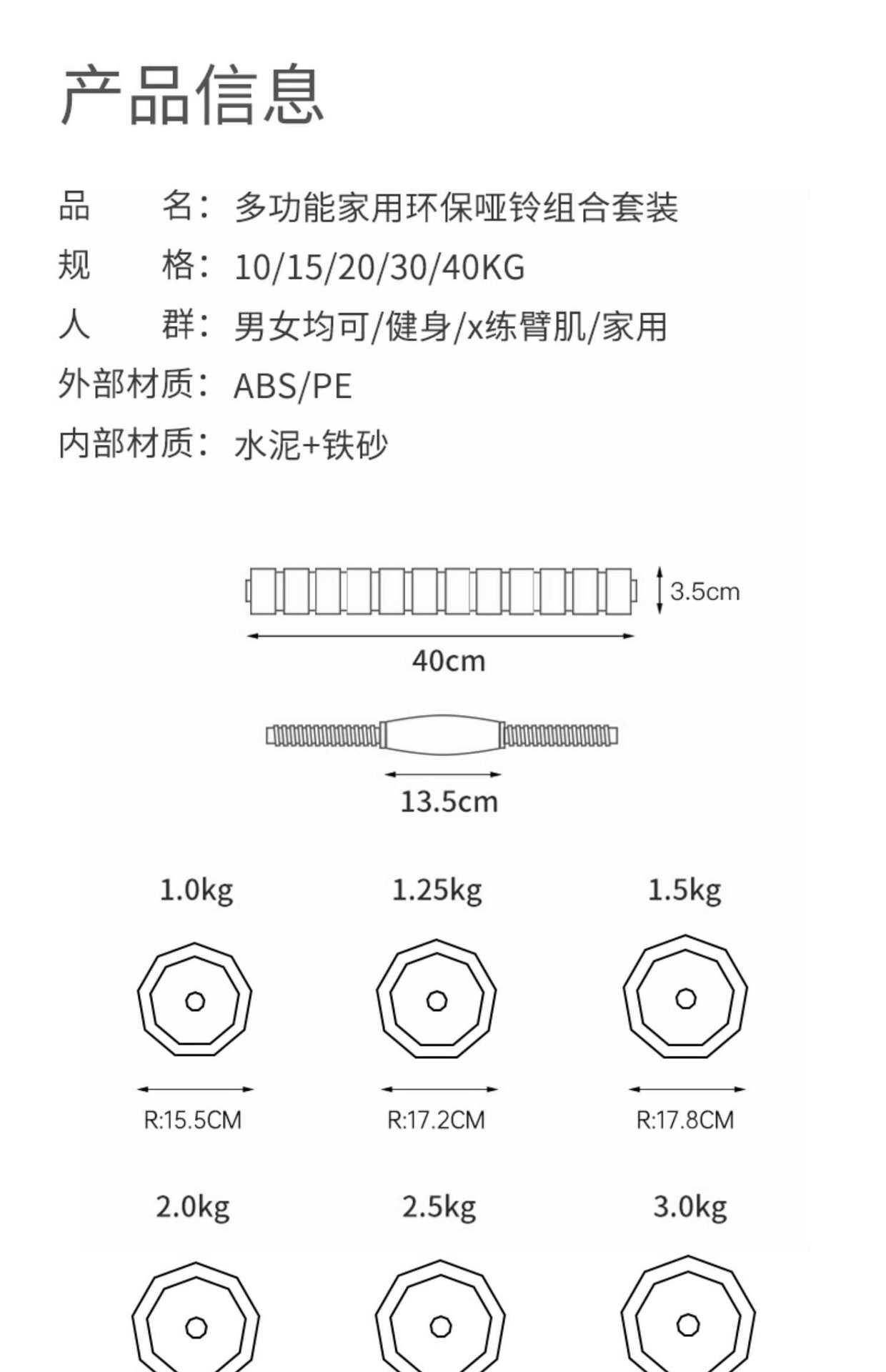 Mancuernas para hombres, fitness, hogar, pesas rusas para mujeres, barra sólida, equipo de ejercicio para dormitorio, peso ajustable
