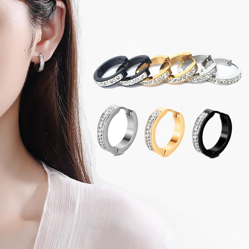 Pendientes de acero inoxidable con barro y pedrería brillante, populares coreanos, moda europea y americana, anillo, acero de titanio, aguja fina, aretes de diamantes para mujer