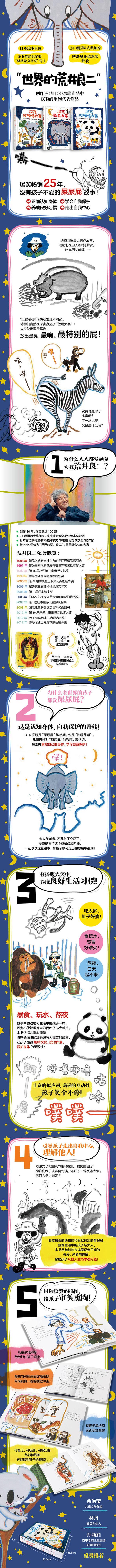 Esta es una serie de libros puente co-creada por el maestro japonés de libros ilustrados de renombre internacional Ryoji Arai y la autora superventas Shoko Nakamura. Es un libro ilustrado con temática de "pedos", "ronquidos" y "estornudos" que a los niños de 2 a 8 años les encanta explorar; es una historia experiencial llena de sonidos, olores y acciones. Contiene 3 libros: "Concurso de Pedos Nocturnos", "Concurso de Estornudos Nocturnos" y "Concurso de Ronquidos Nocturnos". Los animales del zoológico han estado un poco anormales recientemente. Roncan a plena luz del día y se han vuelto particularmente glotones. Se duermen después de comer. A Yuan, el cuidador que los conoce mejor, pronto descubrió que algo andaba mal y decidió observar en secreto por la noche para ver qué hacían los animales. Efectivamente, A Yuan pronto descubrió que los animales salían a hacer travesuras en medio de la noche. Todos los animales se reunieron en la plaza para una reunión. ¡Decidieron celebrar un concurso de pedos! Gorilas, elefantes bebés, hipopótamos, conejos, jirafas, loros, leones, etc., todos mostraron sus poderes mágicos y usaron todos sus trucos para soltar los pedos más fuertes, olorosos y especiales. El concurso de pedos duró varios días y todos se divirtieron mucho. Para ganar el concurso, todos comieron con más vigor. Pero un día, A Yuan descubrió que todos estaban enfermos. Resultó que todos no podían digerir porque comieron demasiado.