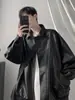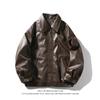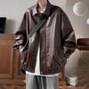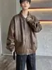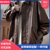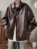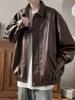 Chaqueta de cuero estilo americano de color retro para hombre, chaqueta de motociclista holgada e informal con solapa de cuero para primavera y otoño, a la moda
