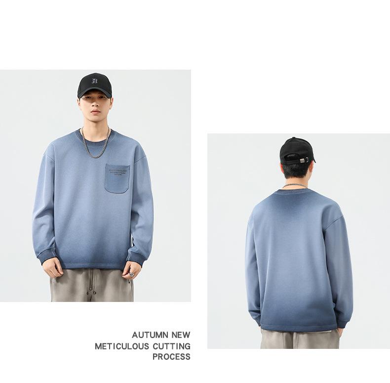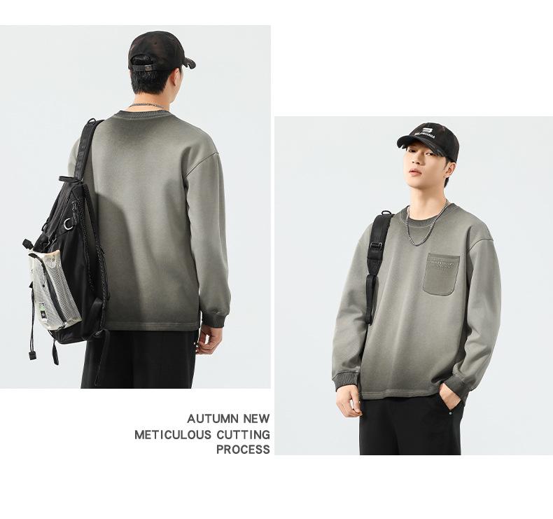 Compra Talla grande Sudadera de cuello redondo pesada para hombre Otoño/Invierno Nueva 380G Americano Retro Lavado Viejo Degradado Chaqueta con Bolsillo al por mayor en Joom.pro