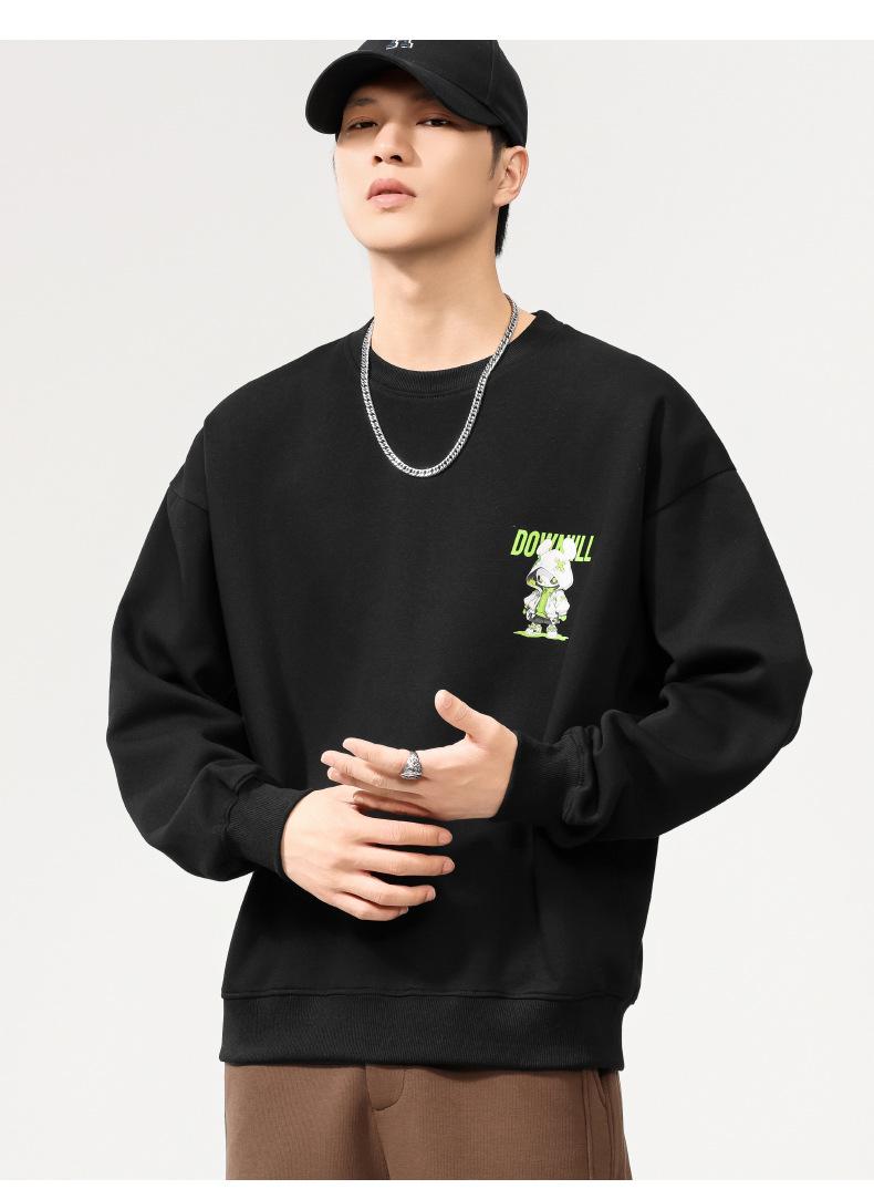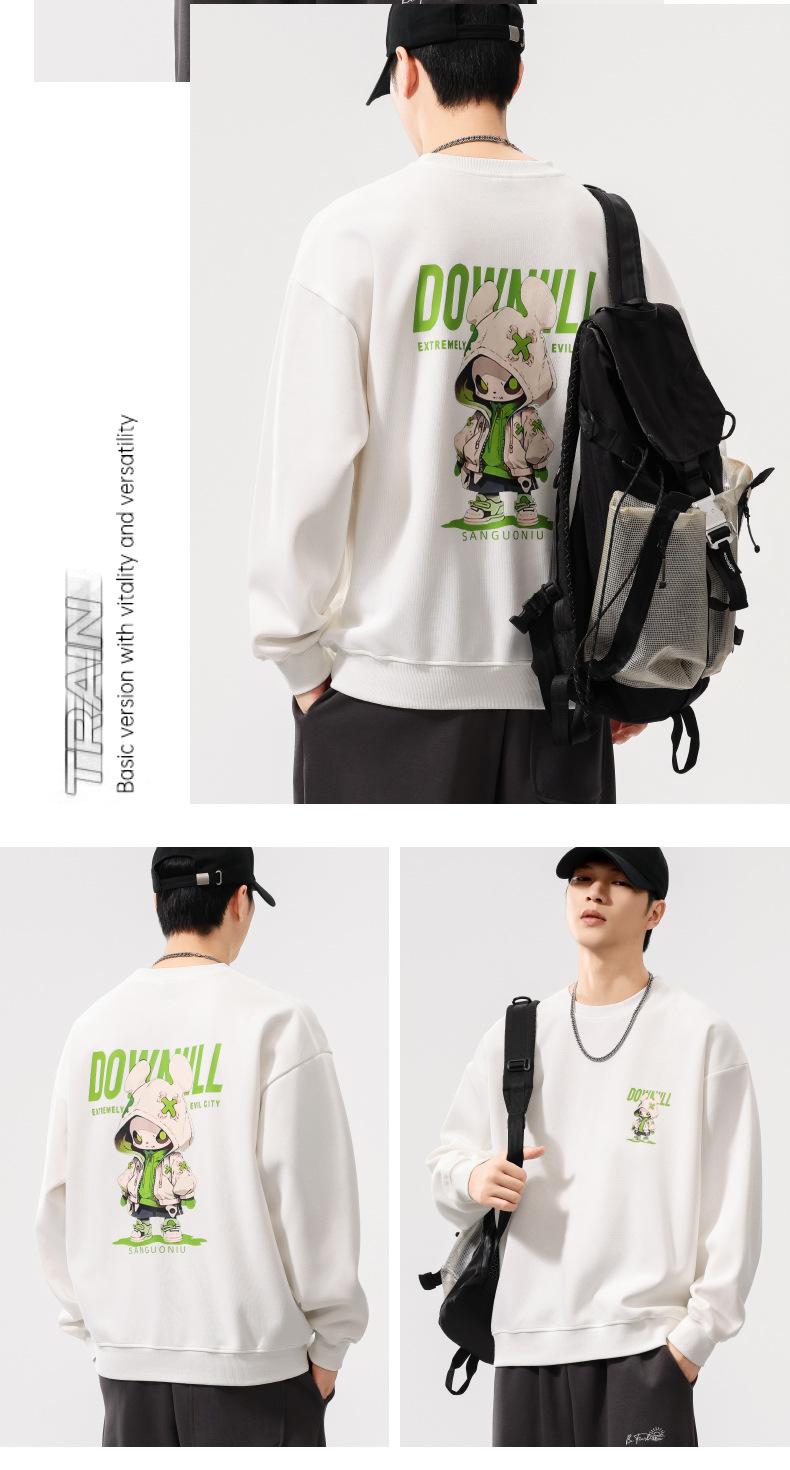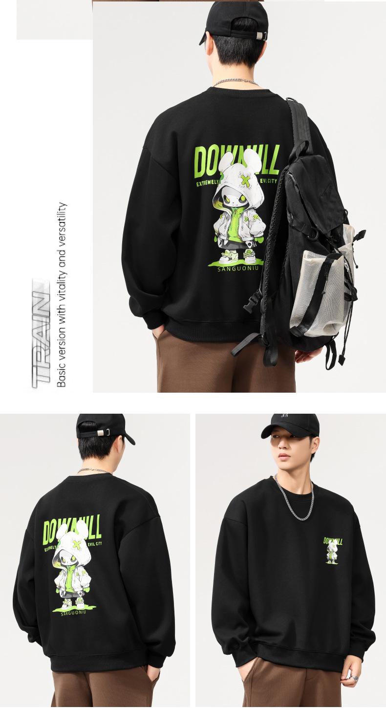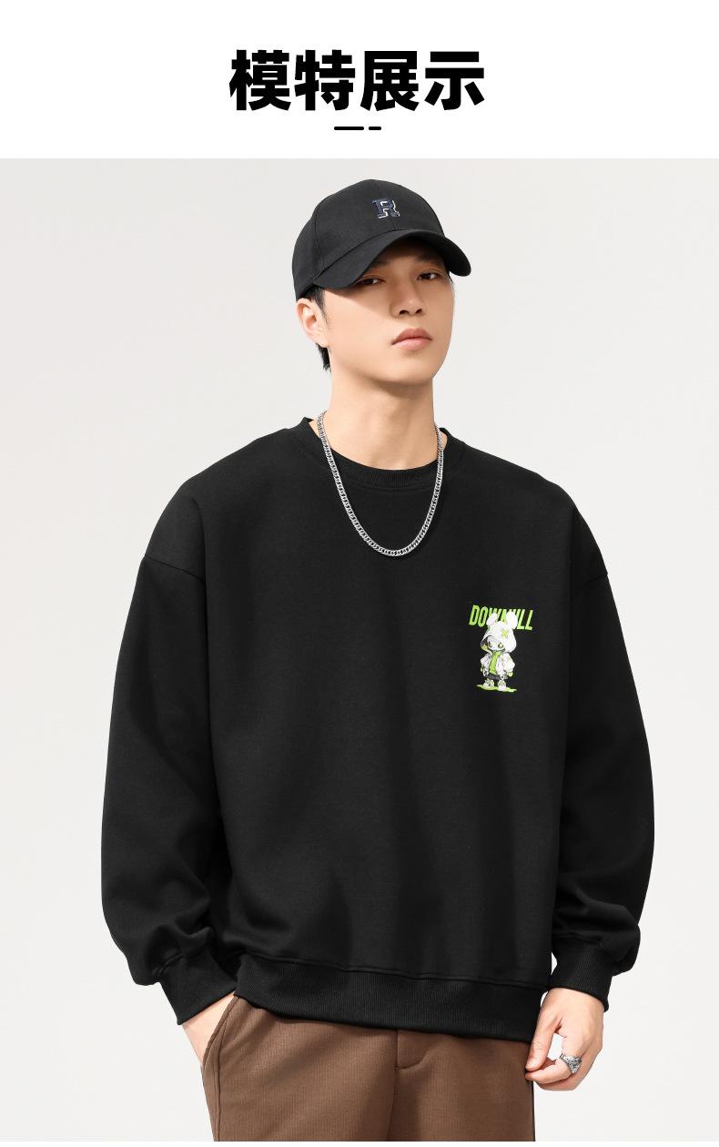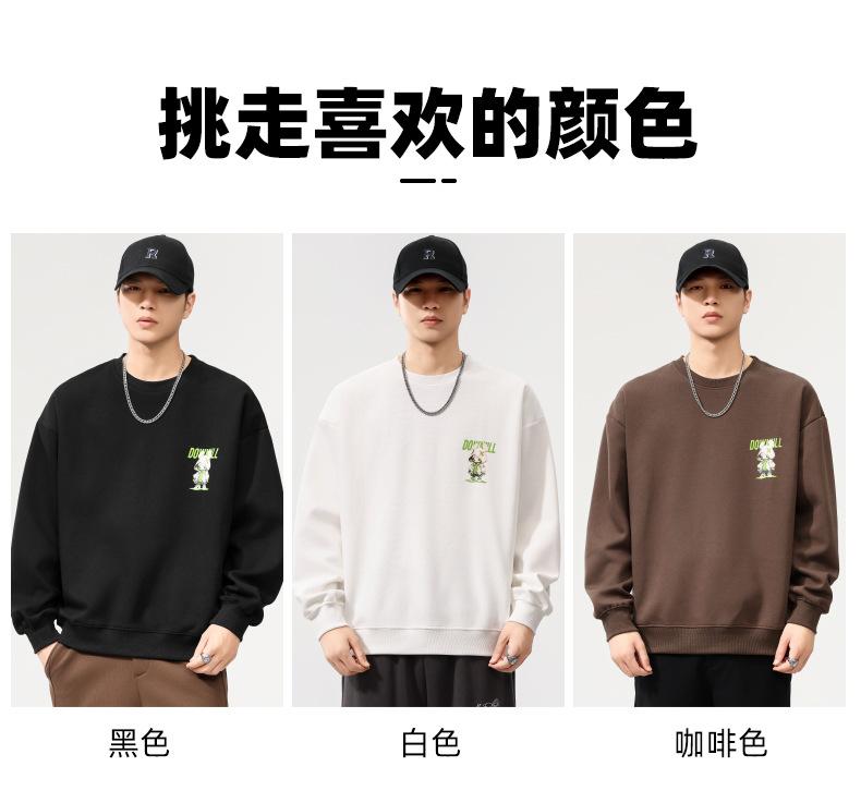 Sudadera de cuello redondo 3177# de talla grande para hombre, otoño, nueva, 320 g, holgada, a la moda, con estampado de dibujos animados