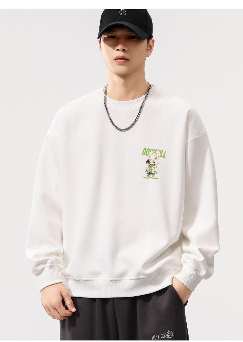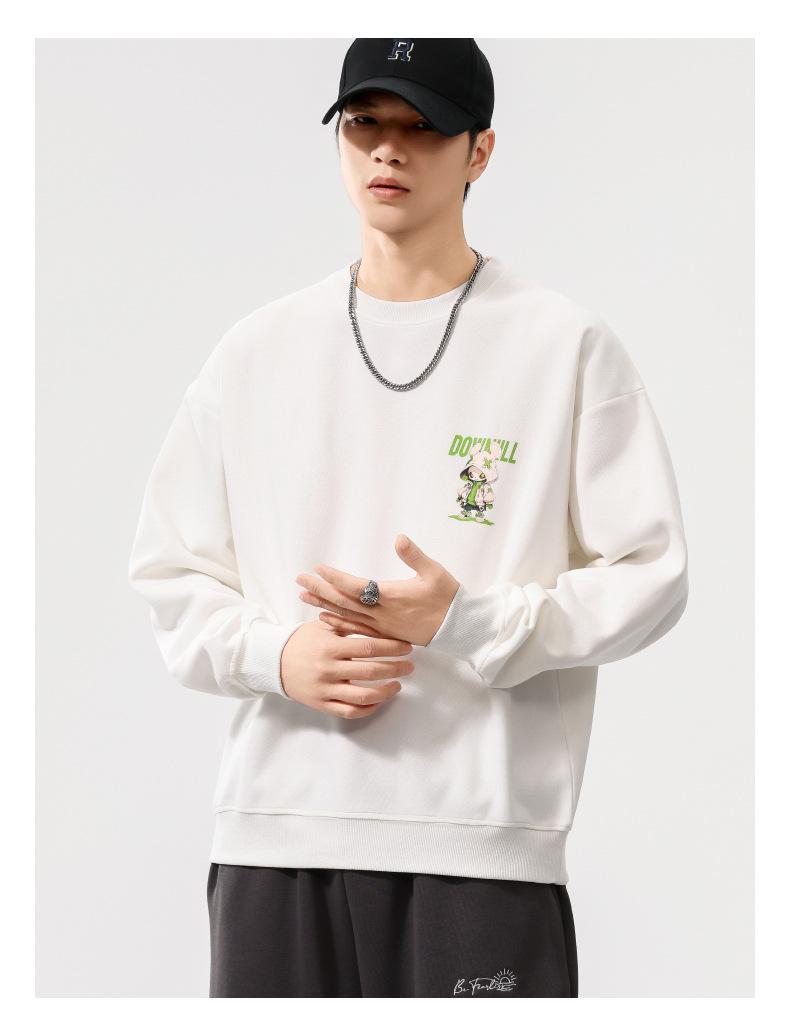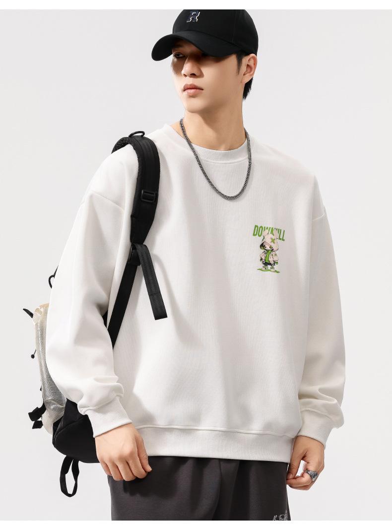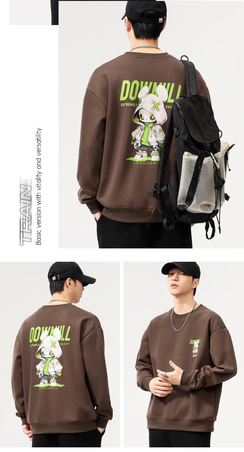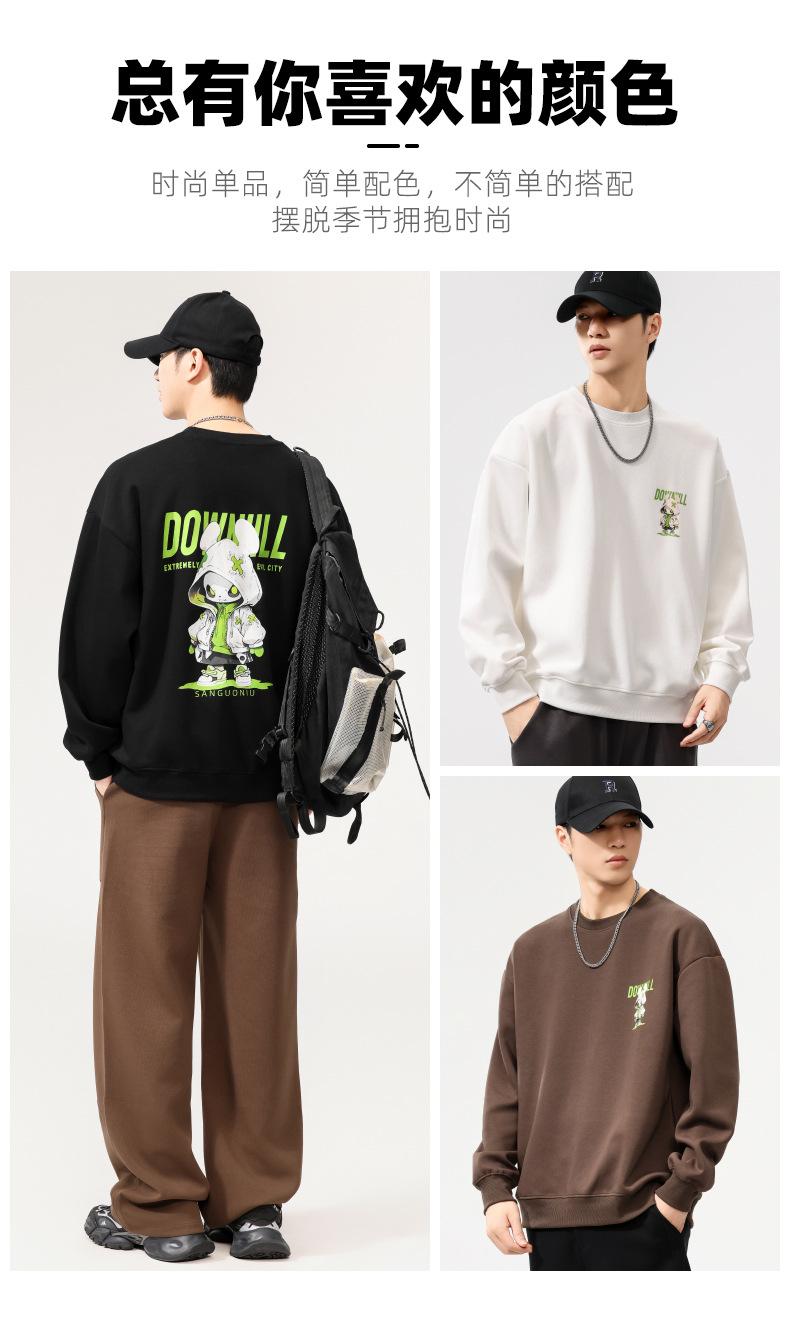 Sudadera de cuello redondo 3177# de talla grande para hombre, otoño, nueva, 320 g, holgada, a la moda, con estampado de dibujos animados