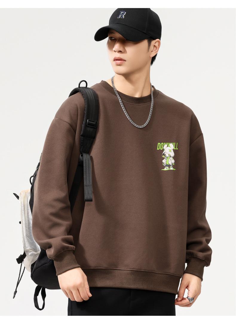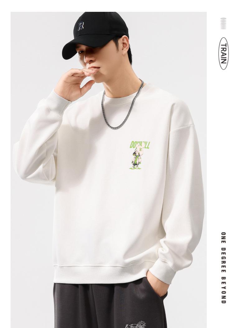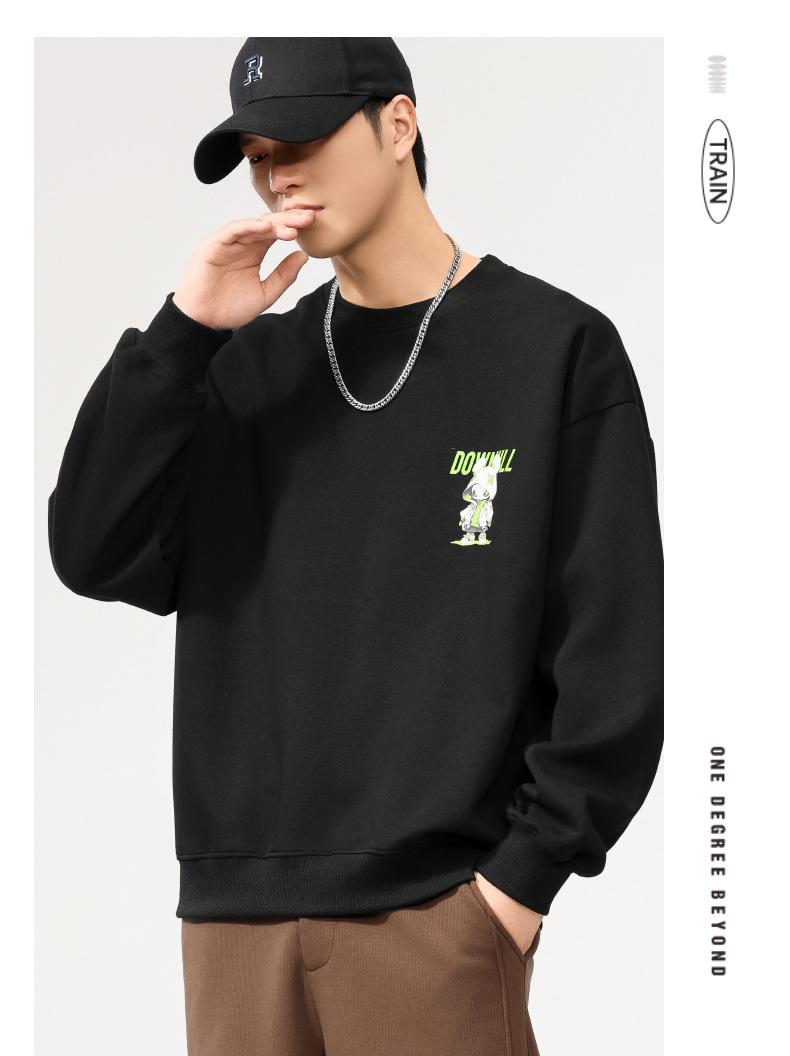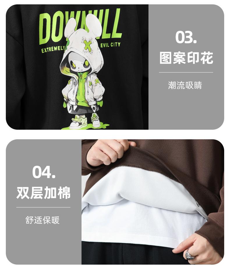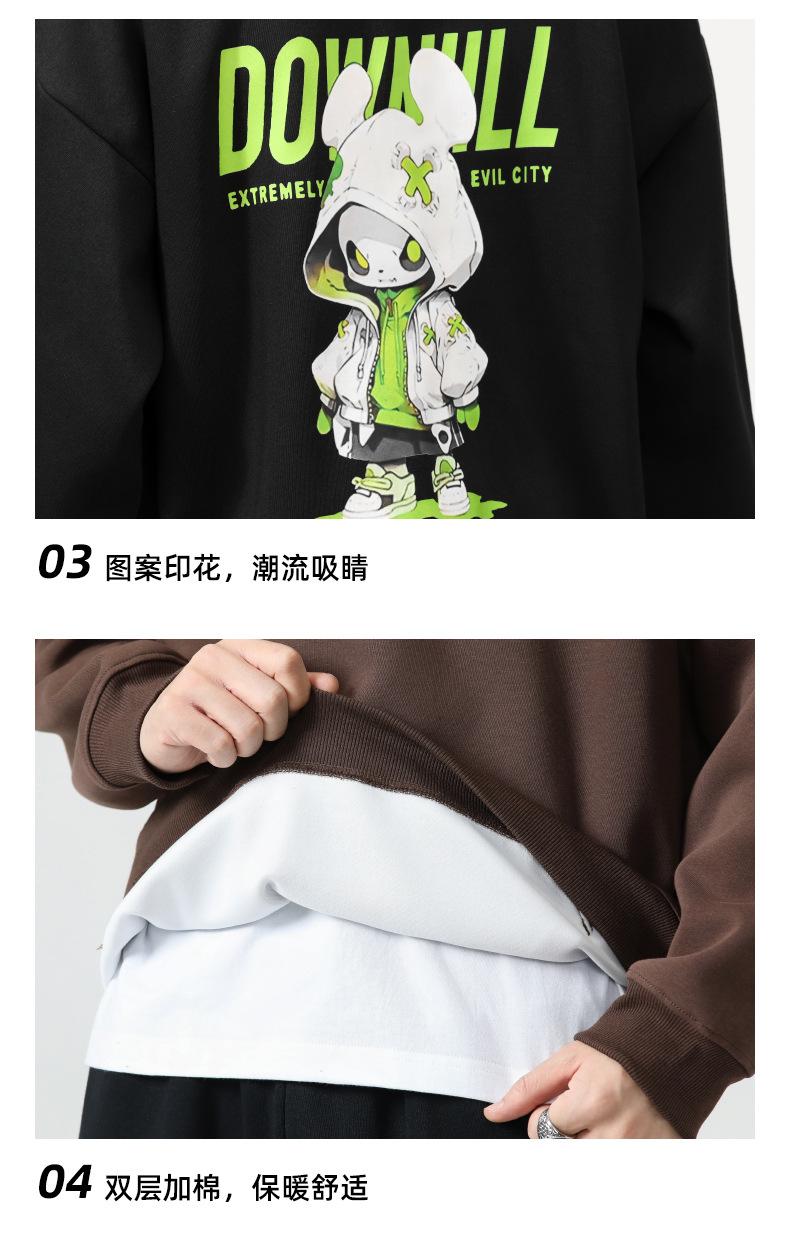 Sudadera de cuello redondo 3177# de talla grande para hombre, otoño, nueva, 320 g, holgada, a la moda, con estampado de dibujos animados