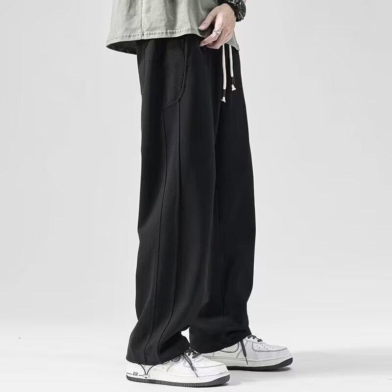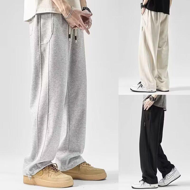 Pantalones deportivos rectos informales de otoño para hombre, holgados, de pierna ancha, de color liso, combinables, informales y a la moda.
