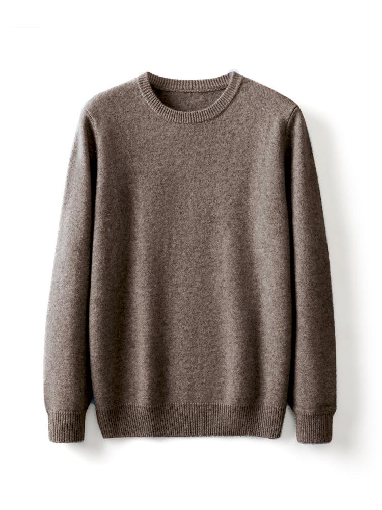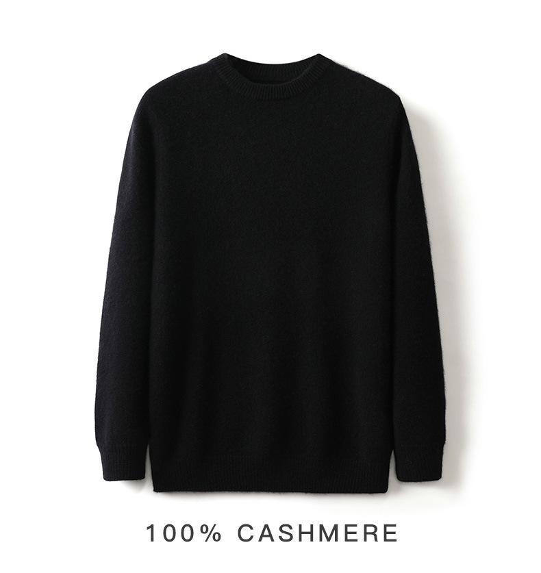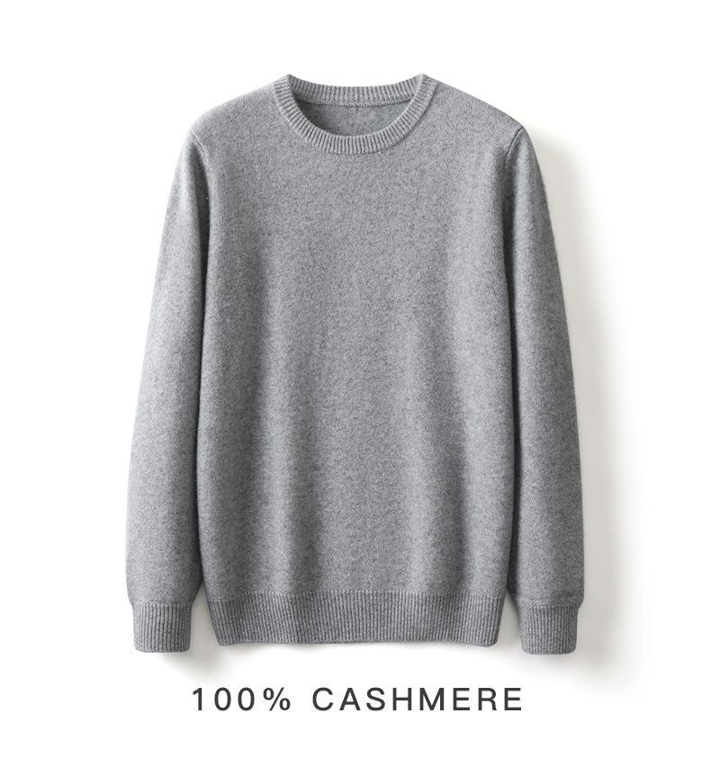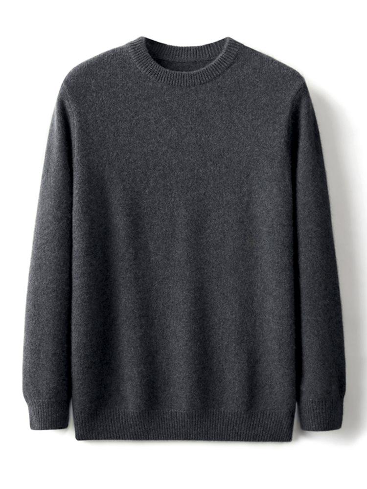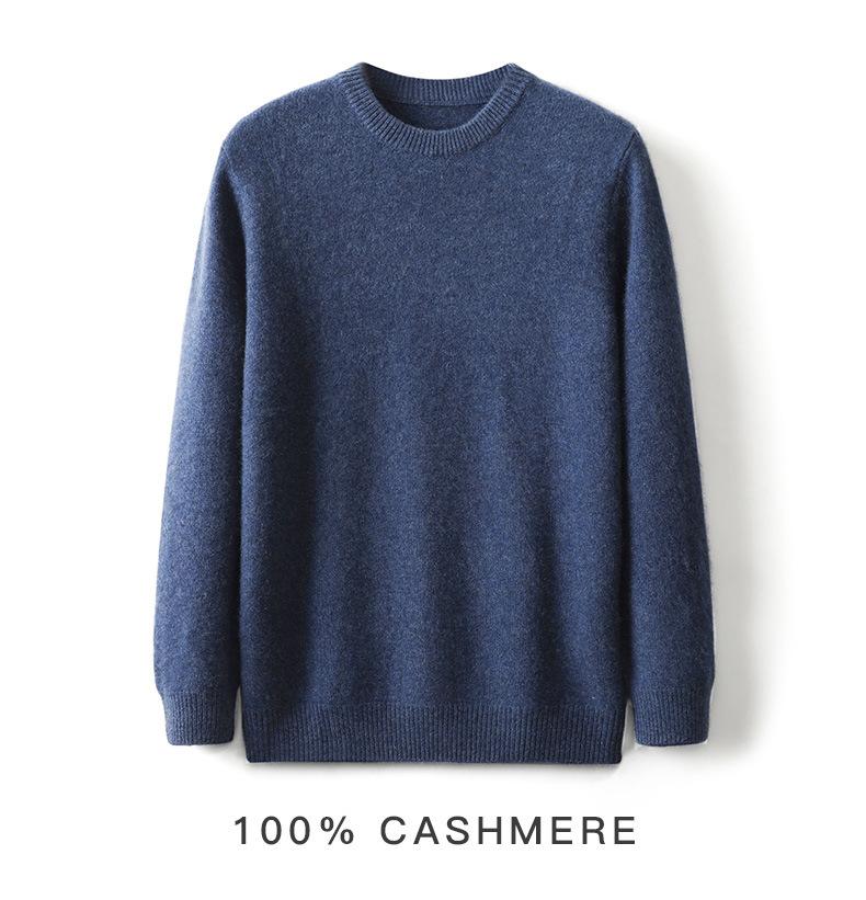 Suéter de cuello redondo para hombre, de otoño e invierno, grueso, sencillo, de color sólido, holgado, informal, de cachemira, básico, de punto, de manga larga