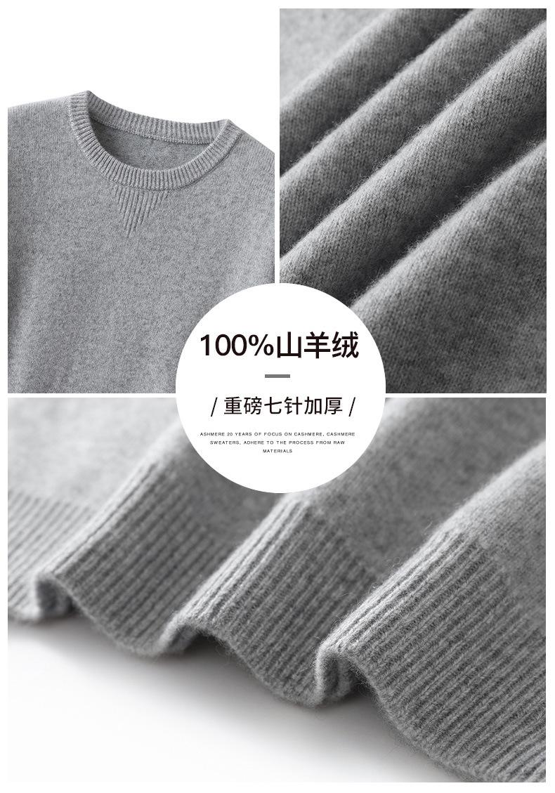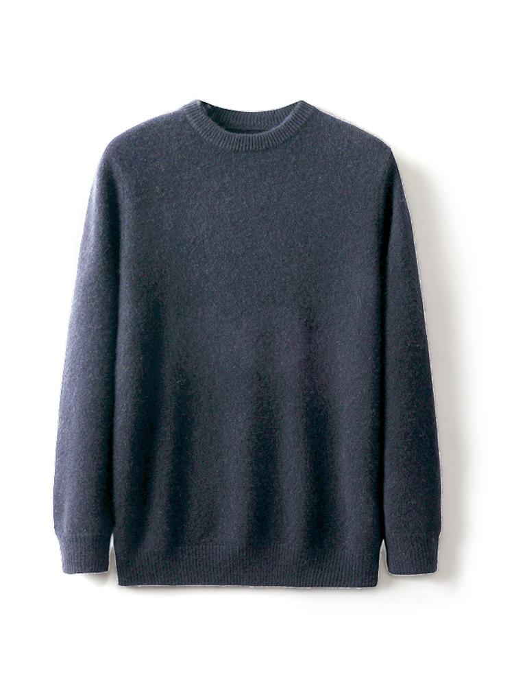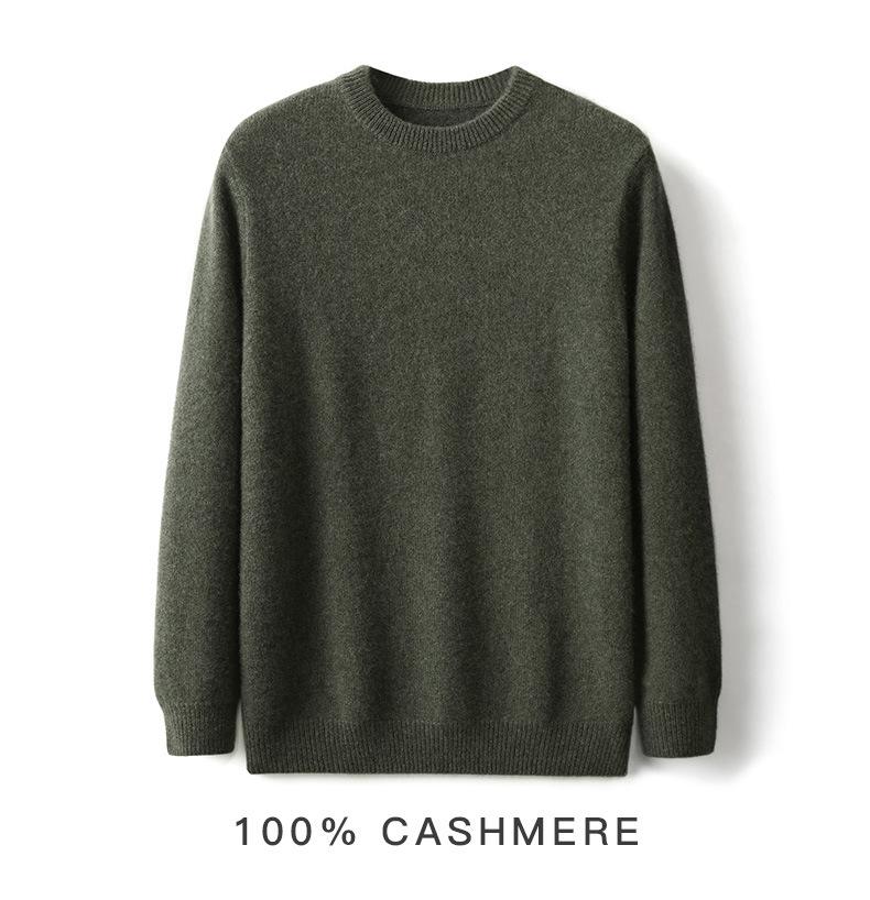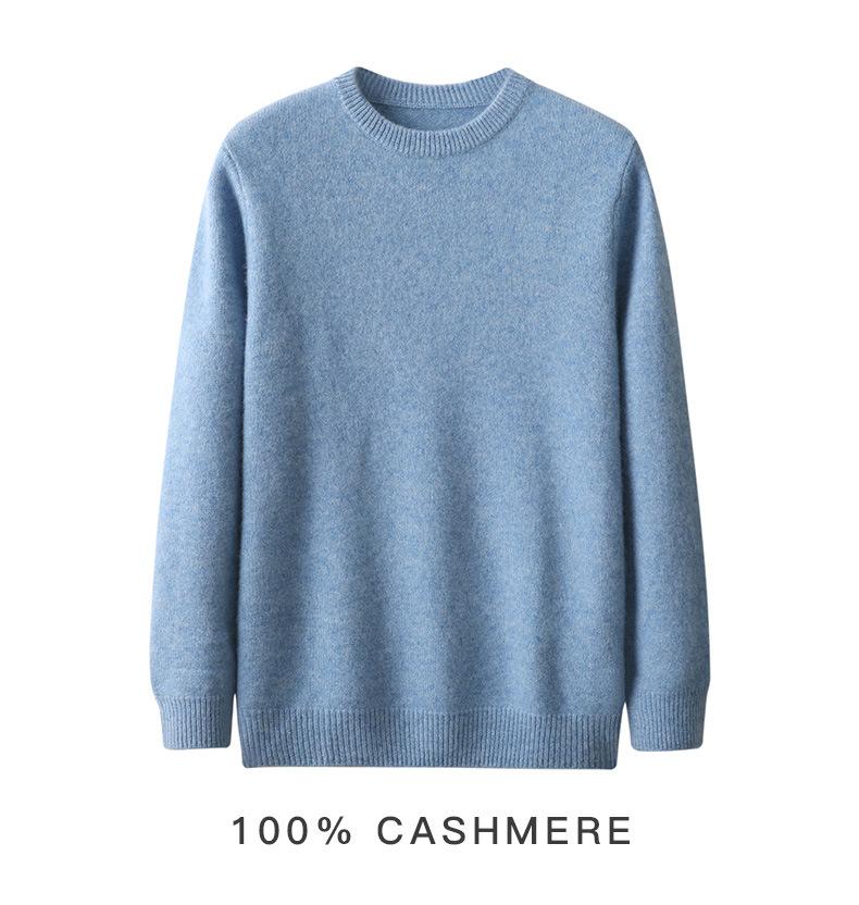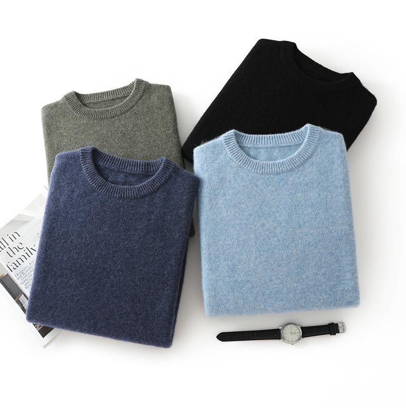 Suéter de cuello redondo para hombre, de otoño e invierno, grueso, sencillo, de color sólido, holgado, informal, de cachemira, básico, de punto, de manga larga