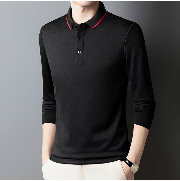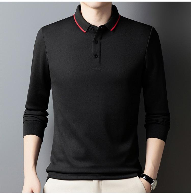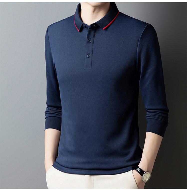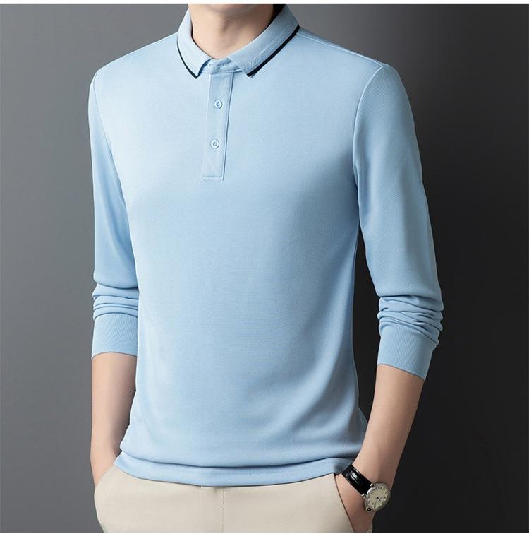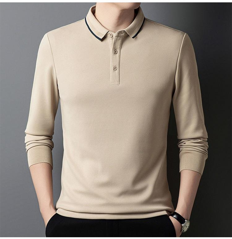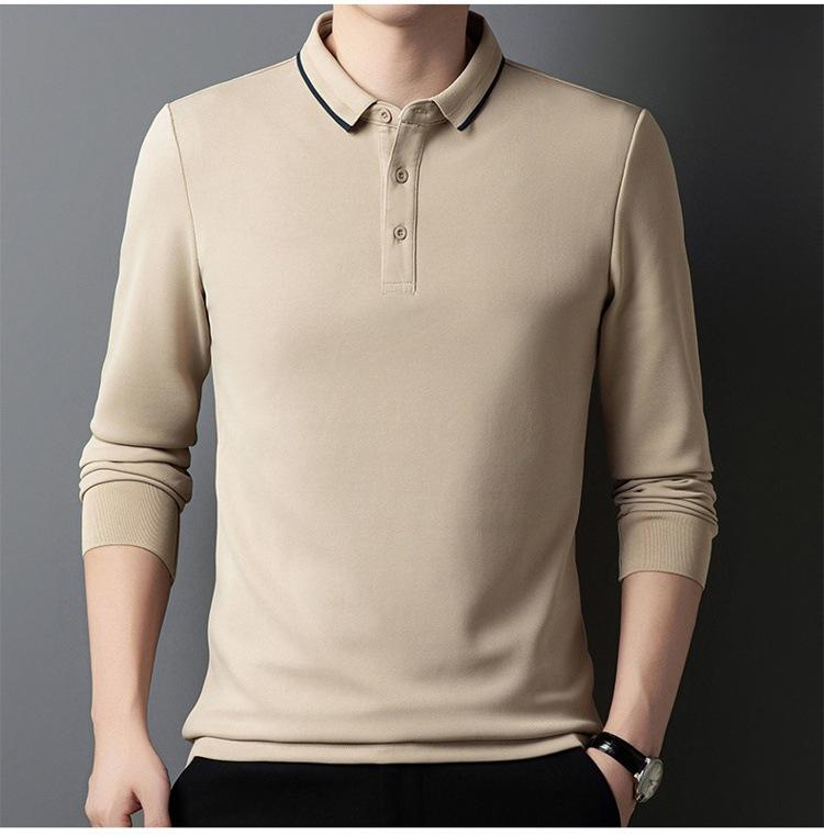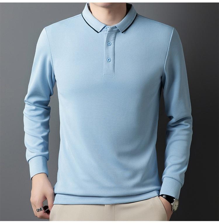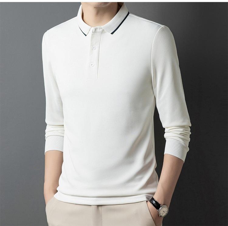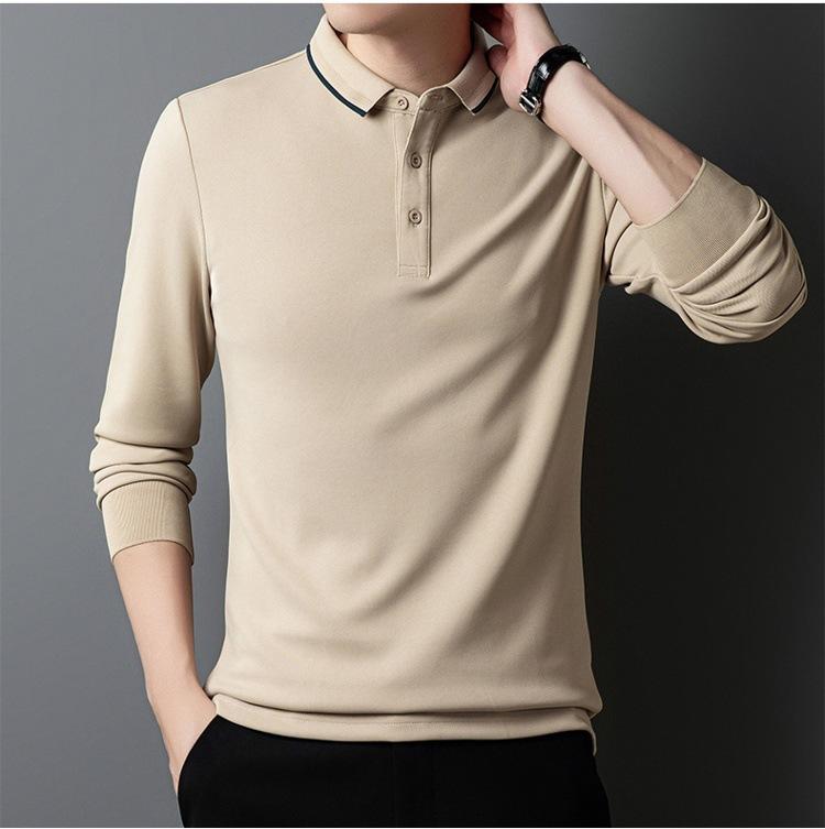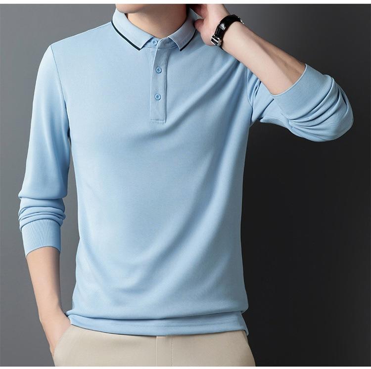 Nuevo Otoño Nueva Camiseta de Manga Larga para Hombre Negocios Casual Urbano Color Sólido Lapp Polo para Hombre