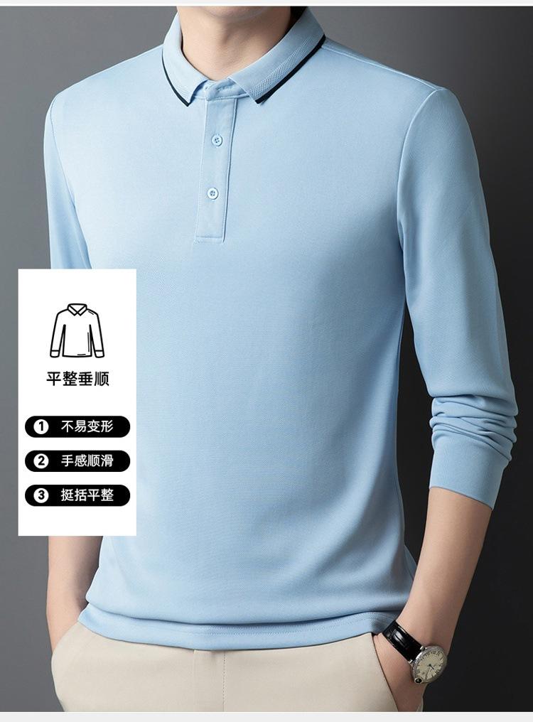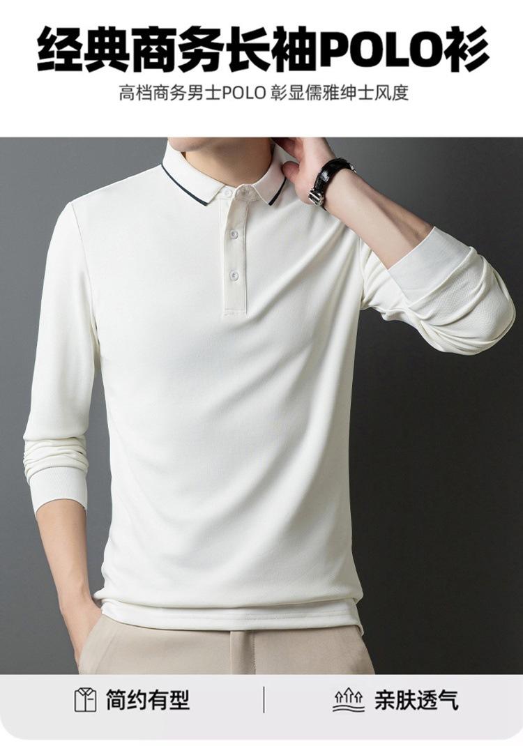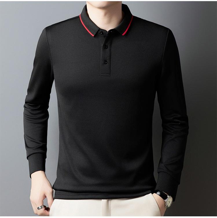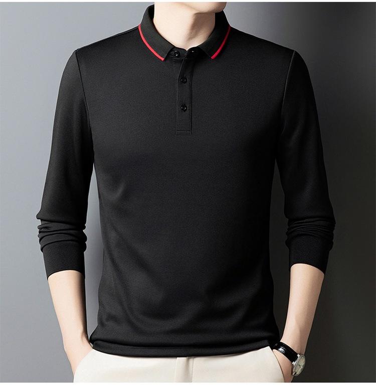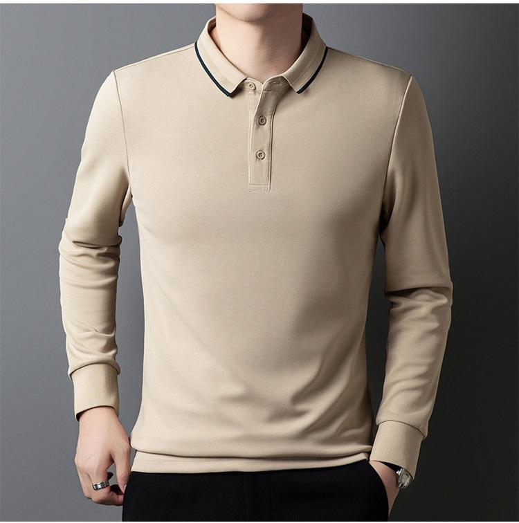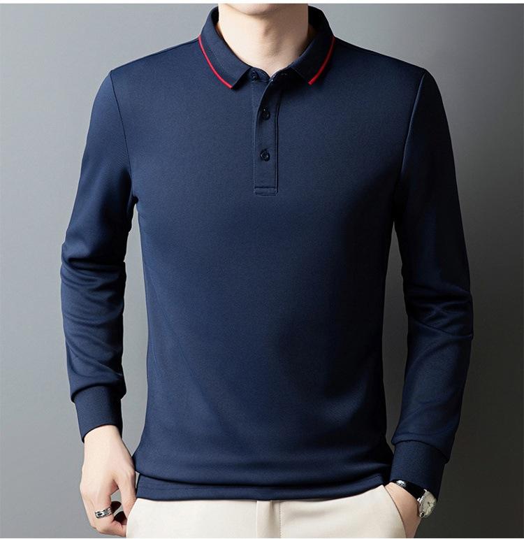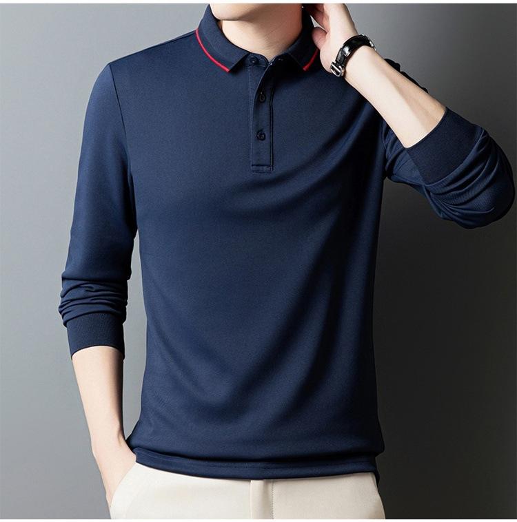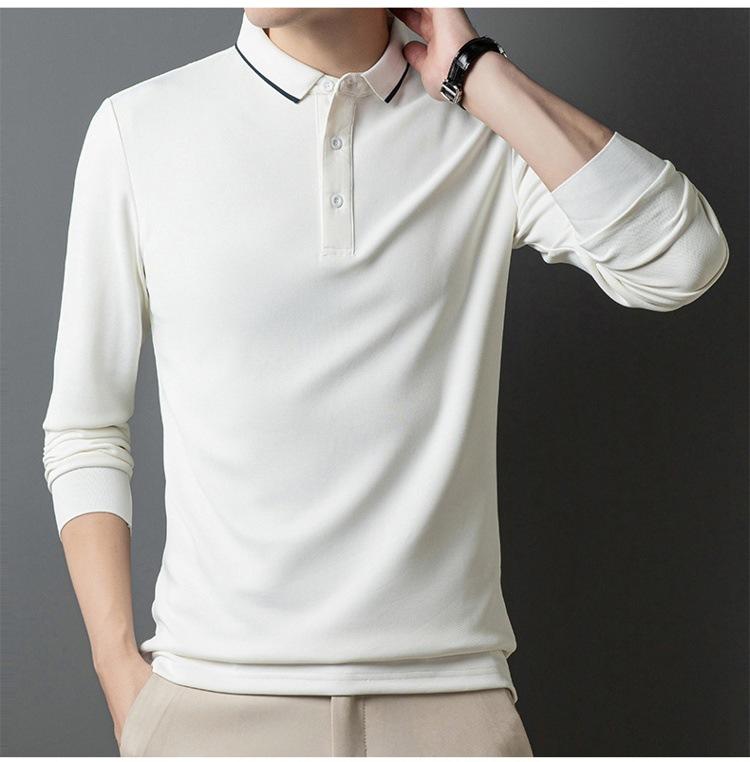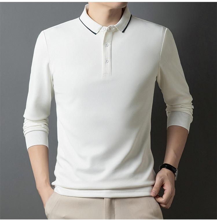Nuevo Otoño Nueva Camiseta de Manga Larga para Hombre Negocios Casual Urbano Color Sólido Lapp Polo para Hombre