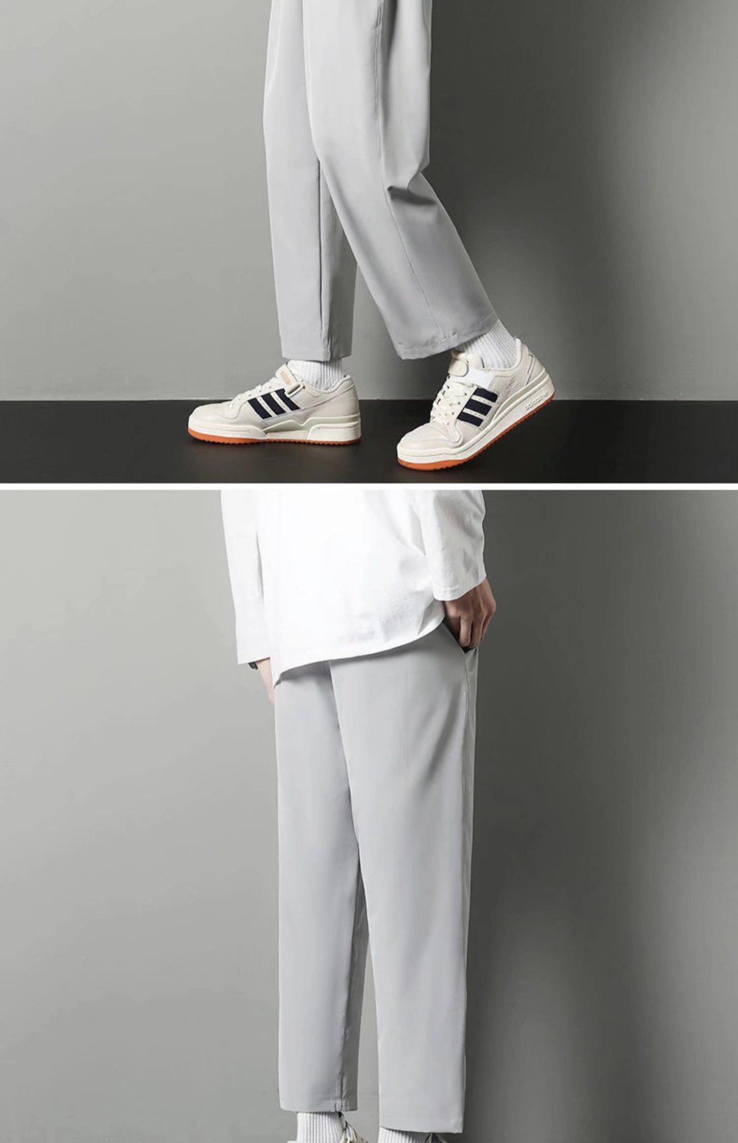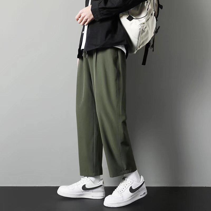 Pantalones casuales para hombre Nuevo estilo Sueltos Rectos de Pierna Ancha Pantalones de Traje con Caída Estilo Coreano Modernos Hasta el Piso Pantalones de Seda Helada
