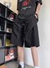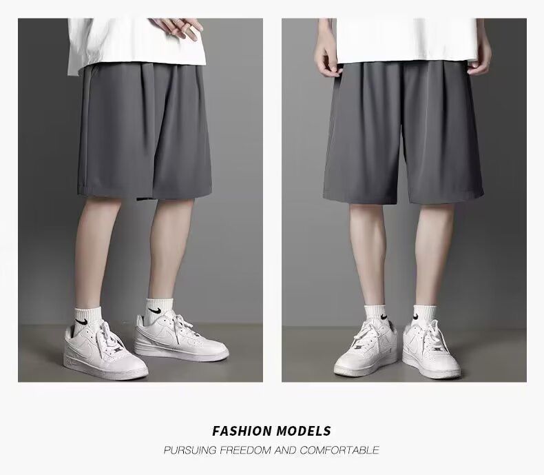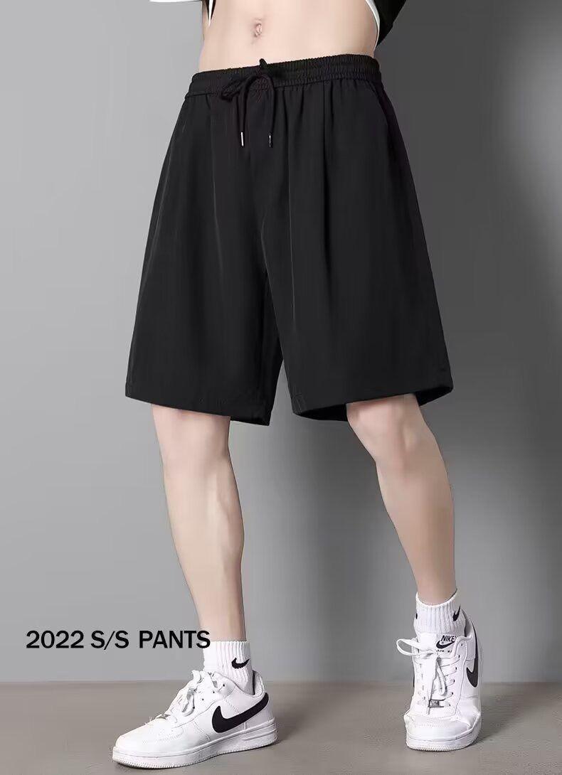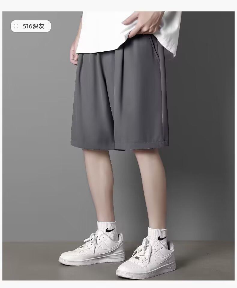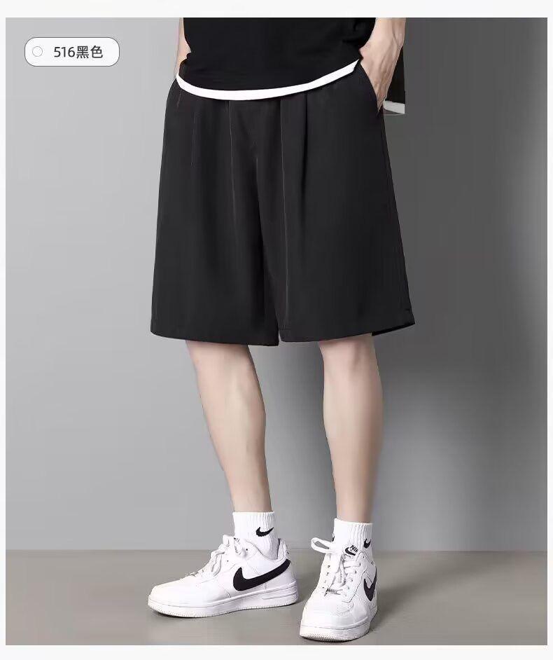 Pantalones cortos de seda de hielo para niños, pantalones de verano finos de secado rápido, deportivos, holgados, informales, de marca moderna, pantalones negros de cinco puntos para hombres
